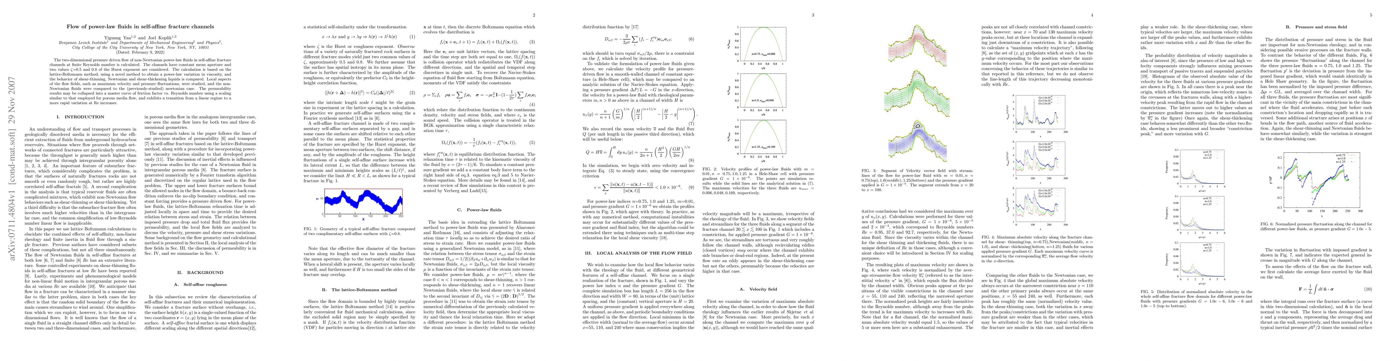This study investigates the flow of non-Newtonian power-law fluids in self-affine fracture channels using the lattice-Boltzmann method, comparing shear-thinning, Newtonian, and shear-thickening behaviors. The results show a transition in permeability from linear to a more rapid variation with increasing Reynolds number.
