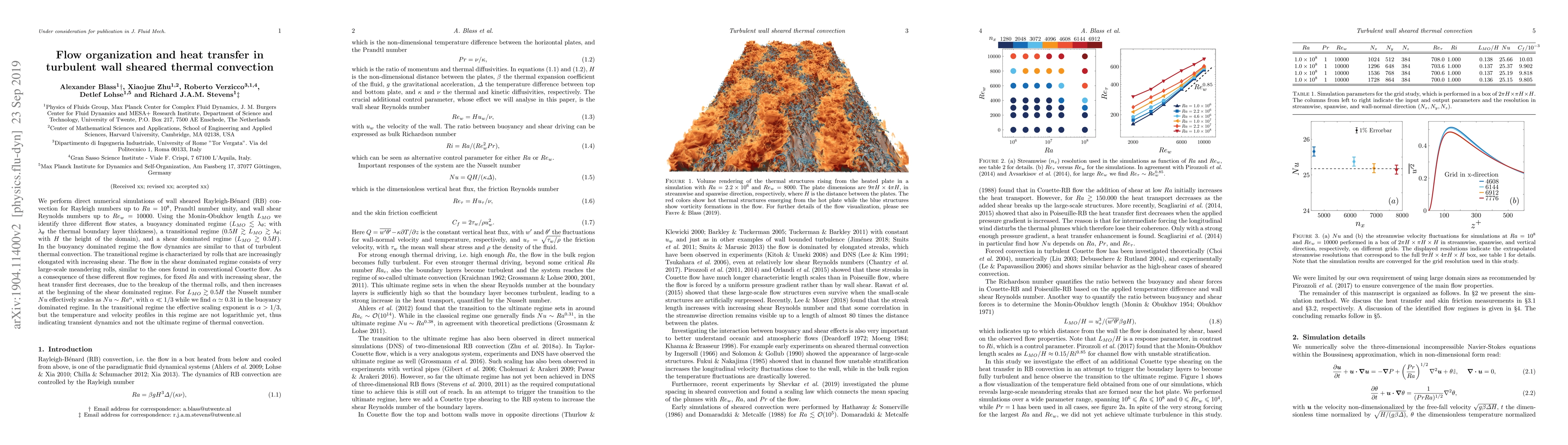This paper investigates the flow organization and heat transfer in turbulent wall sheared Rayleigh-Bénard convection through direct numerical simulations. It identifies three distinct flow regimes based on the Monin-Obukhov length, showing that heat transfer initially decreases then increases with increasing shear, with different scaling laws for the Nusselt number in each regime.