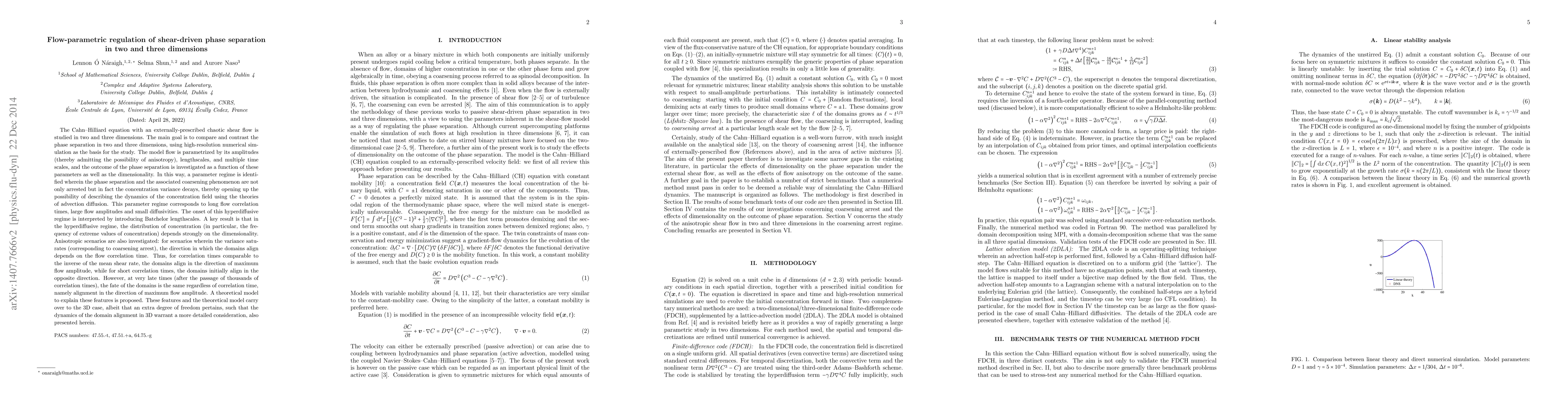 The Cahn-Hilliard equation with an externally-prescribed chaotic shear flow is studied in two and three dimensions. The main goal is to compare and contrast the phase separation in two and three dimensions, using high-resolution numerical simulation as the basis for the study. The model flow is parametrized by its amplitudes (thereby admitting the possibility of anisotropy), lengthscales, and multiple time scales, and the outcome of the phase separation is investigated as a function of these parameters as well as the dimensionality. In this way, a parameter regime is identified wherein the phase separation and the associated coarsening phenomenon are not only arrested but in fact the concentration variance decays, thereby opening up the possibility of describing the dynamics of the concentration field using the theories of advection diffusion. This parameter regime corresponds to long flow correlation times, large flow amplitudes and small diffusivities. The onset of this hyperdiffusive regime is interpreted by introducing Batchelor lengthscales. A key result is that in the hyperdiffusive regime, the distribution of concentration (in particular, the frequency of extreme values of concentration) depends strongly on the dimensionality. Anisotropic scenarios are also investigated: for scenarios wherein the variance saturates (corresponding to coarsening arrest), the direction in which the domains align depends on the flow correlation time. Thus, for correlation times comparable to the inverse of the mean shear rate, the domains align in the direction of maximum flow amplitude, while for short correlation times, the domains initially align in the opposite direction. However, at very late times (after the passage of thousands of correlation times), the fate of the domains is the same regardless of correlation time, namely alignment in the direction of maximum flow amplitude.