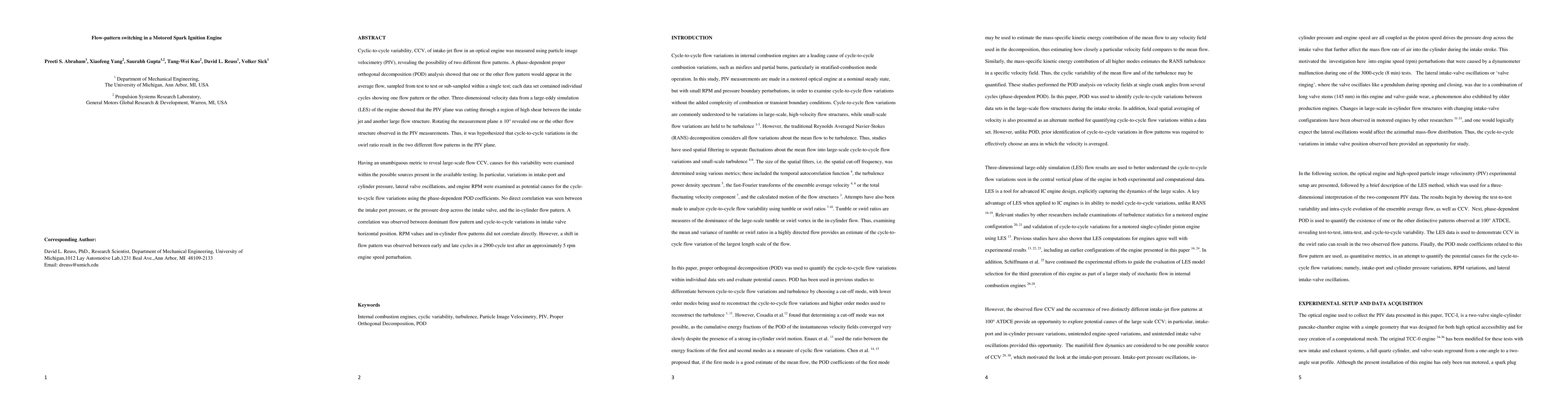 This study investigates cyclic-to-cycle variability in intake-jet flow in a motored spark ignition engine using PIV and LES, revealing two distinct flow patterns. Analysis suggests that variations in the intake valve horizontal position, rather than intake port pressure or RPM, are linked to these flow pattern changes.