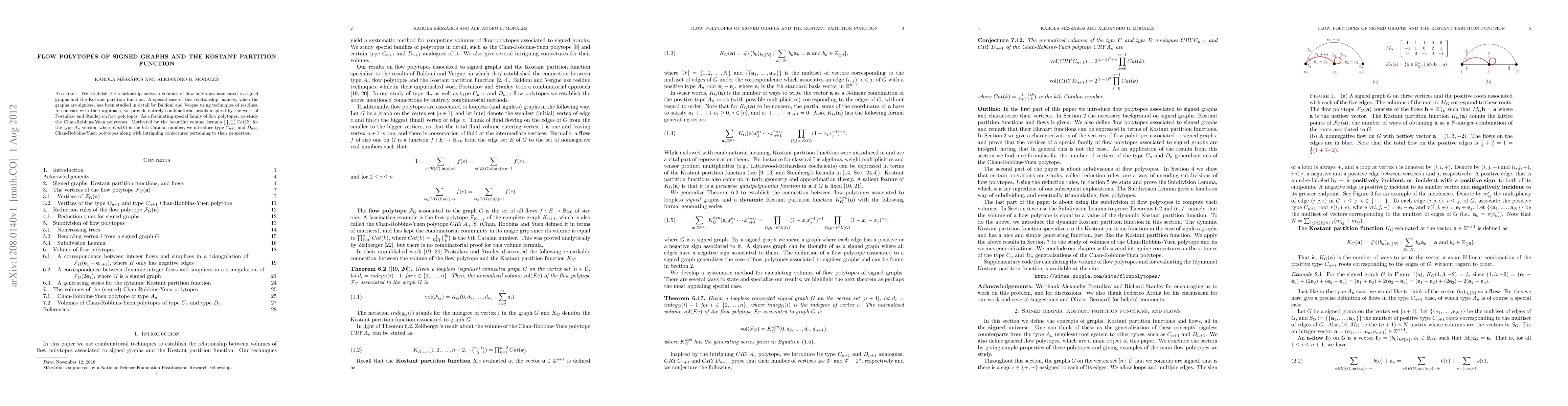 This paper establishes a combinatorial relationship between the volumes of flow polytopes associated with signed graphs and the Kostant partition function, contrasting with previous residue-based methods. It introduces type $C_{n+1}$ and $D_{n+1}$ Chan-Robbins-Yuen polytopes and conjectures their properties, inspired by the volume formula for type $A_n$ polytopes.