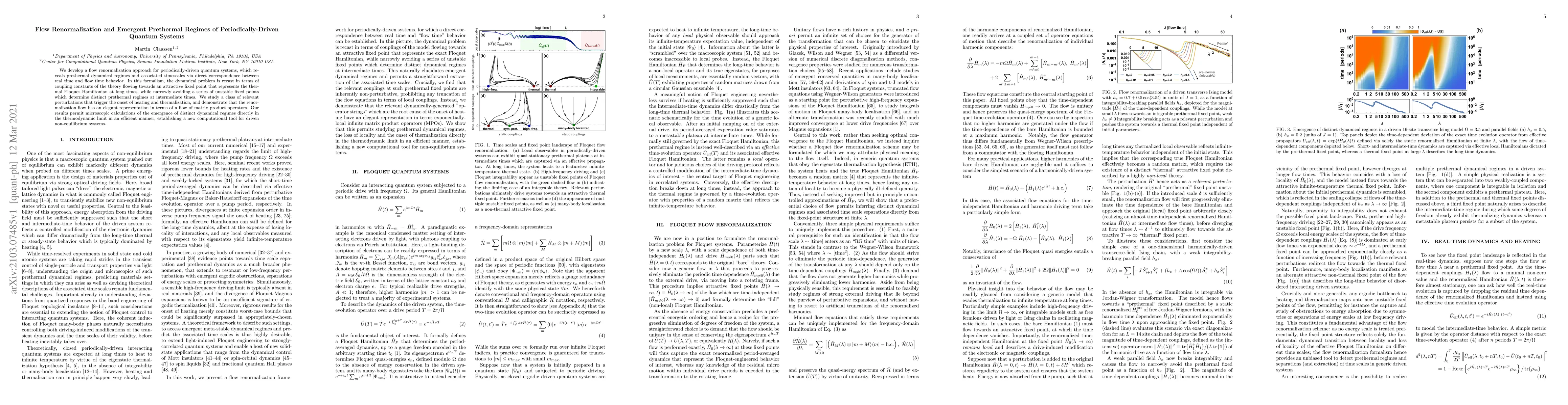 This paper introduces a flow renormalization approach to study periodically-driven quantum systems, revealing prethermal regimes and associated timescales. The method recasts the problem in terms of coupling constants flowing towards a thermal Floquet Hamiltonian, providing a new computational tool for driven non-equilibrium systems.