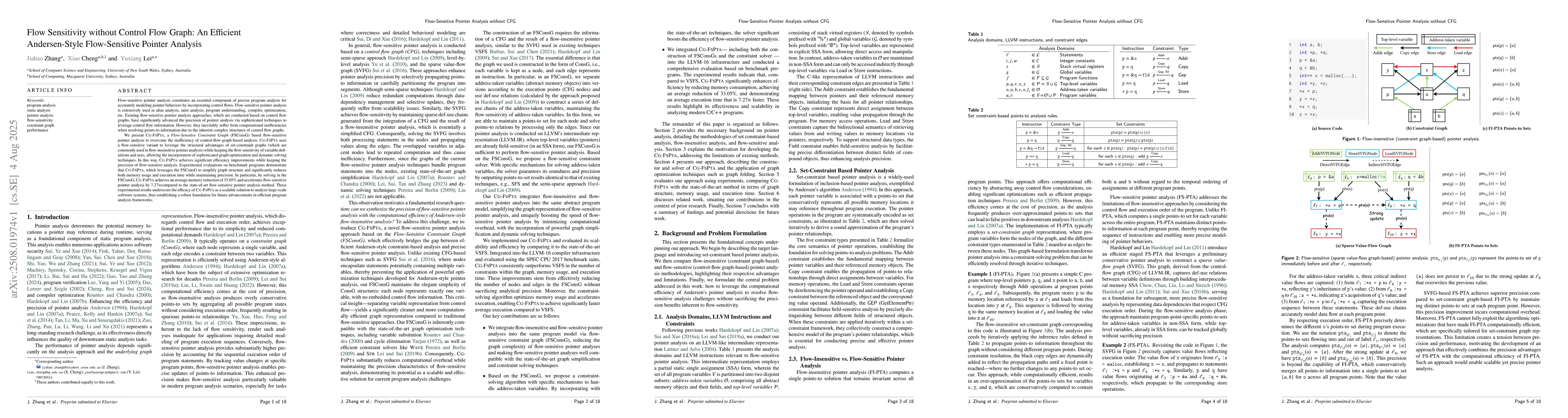 Flow-sensitive pointer analysis constitutes an essential component of precise program analysis for accurately modeling pointer behaviors by incorporating control flows. Flow-sensitive pointer analysis is extensively used in alias analysis, taint analysis, program understanding, compiler optimization, etc. Existing flow-sensitive pointer analysis approaches, which are conducted based on control flow graphs, have significantly advanced the precision of pointer analysis via sophisticated techniques to leverage control flow information. However, they inevitably suffer from computational inefficiencies when resolving points-to information due to the inherent complex structures of control flow graphs. We present CG-FSPTA, a Flow-Sensitive Constraint Graph (FSConsG) based flow-sensitive pointer analysis to overcome the inefficiency of control-flow-graph-based analysis. CG-FSPTA uses a flow-sensitive variant to leverage the structural advantages of set-constraint graphs (which are commonly used in flow-insensitive pointer analysis) while keeping the flow sensitivity of variable definitions and uses, allowing the incorporation of sophisticated graph optimization and dynamic solving techniques. In this way, CG-FSPTA achieves significant efficiency improvements while keeping the precision of flow-sensitive analysis. Experimental evaluations on benchmark programs demonstrate that CG-FSPTA, significantly reduces both memory usage and execution time while maintaining precision. In particular, by solving in the FSConsG, CG-FSPTA achieves an average memory reduction of 33.05\% and accelerates flow-sensitive pointer analysis by 7.27x compared to the state-of-art method. These experimental results underscore the efficacy of CG-FSPTA as a scalable solution to analyze large-scale software systems, establishing a robust foundation for future advancements in efficient program analysis frameworks.