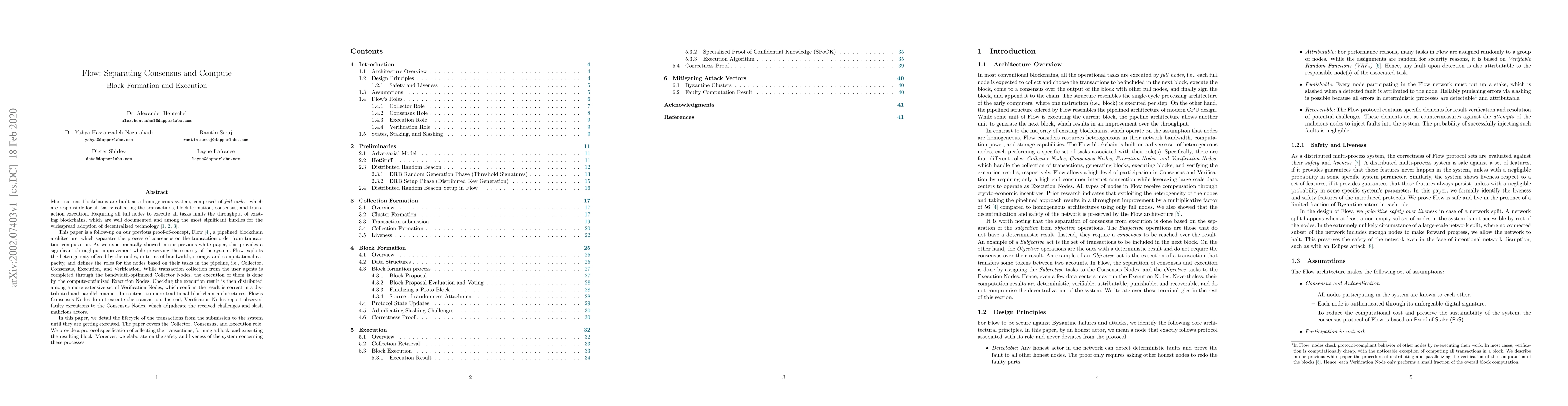 This paper presents Flow, a blockchain architecture that separates consensus from transaction computation, improving throughput while preserving security through node specialization.