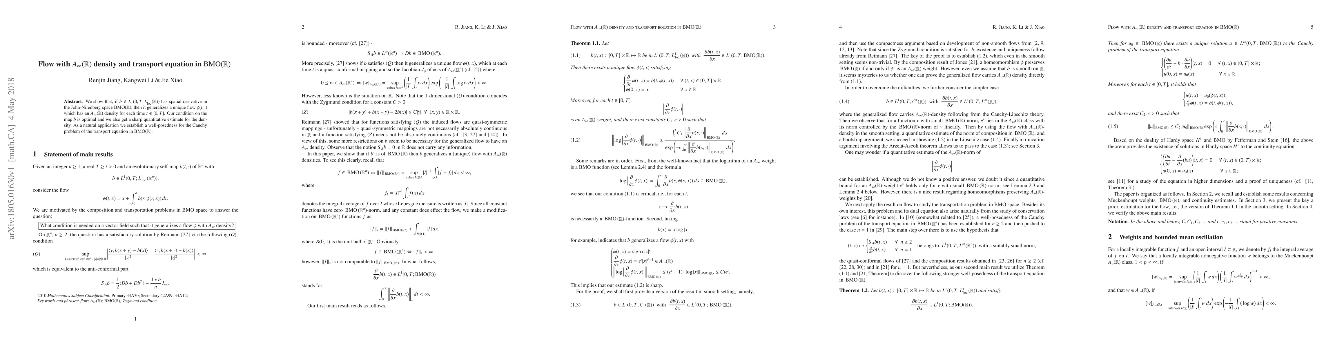 Summary: This paper demonstrates the existence of a unique flow with $A_\infty(\mathbb{R})$ density generated by a map $b$ in $L^1(0,T;L^1_{\mathrm{loc}}(\mathbb{R}))$ with spatial derivative in $\mathrm{BMO}(\mathbb{R})$, and proves well-posedness for the transport equation in $\mathrm{BMO}(\mathbb{R})$. The conditions and estimates presented are shown to be optimal.