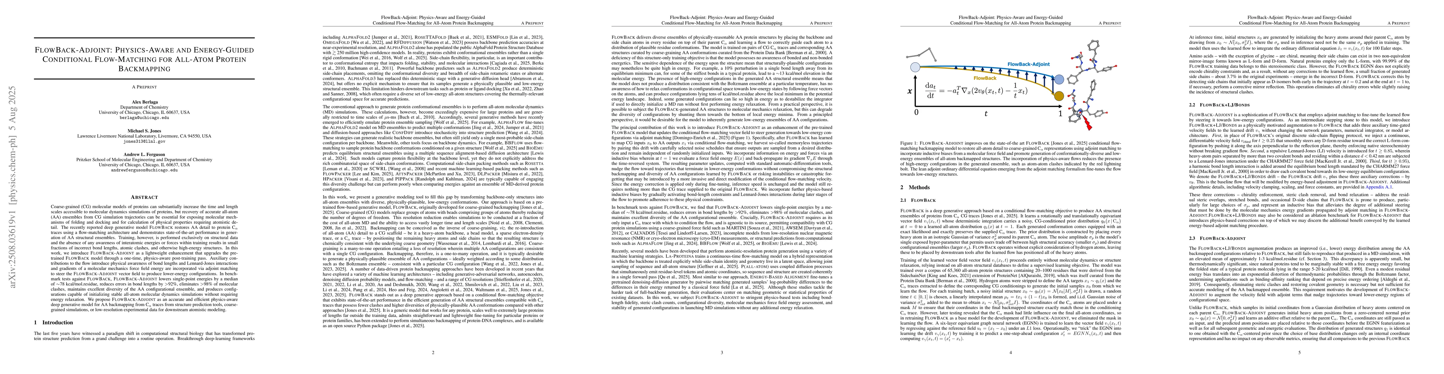 Coarse-grained (CG) molecular models of proteins can substantially increase the time and length scales accessible to molecular dynamics simulations of proteins, but recovery of accurate all-atom (AA) ensembles from CG simulation trajectories can be essential for exposing molecular mechanisms of folding and docking and for calculation of physical properties requiring atomistic detail. The recently reported deep generative model FlowBack restores AA detail to protein C-alpha traces using a flow-matching architecture and demonstrates state-of-the-art performance in generation of AA structural ensembles. Training, however, is performed exclusively on structural data and the absence of any awareness of interatomic energies or forces within training results in small fractions of incorrect bond lengths, atomic clashes, and otherwise high-energy structures. In this work, we introduce FlowBack-Adjoint as a lightweight enhancement that upgrades the pre-trained FlowBack model through a one-time, physics-aware post-training pass. Auxiliary contributions to the flow introduce physical awareness of bond lengths and Lennard-Jones interactions and gradients of a molecular mechanics force field energy are incorporated via adjoint matching to steer the FlowBack-Adjoint vector field to produce lower-energy configurations. In benchmark tests against FlowBack, FlowBack-Adjoint lowers single-point energies by a median of ~78 kcal/mol.residue, reduces errors in bond lengths by >92%, eliminates >98% of molecular clashes, maintains excellent diversity of the AA configurational ensemble, and produces configurations capable of initializing stable all-atom molecular dynamics simulations without requiring energy relaxation. We propose FlowBack-Adjoint as an accurate and efficient physics-aware deep generative model for AA backmapping from C-alpha traces.