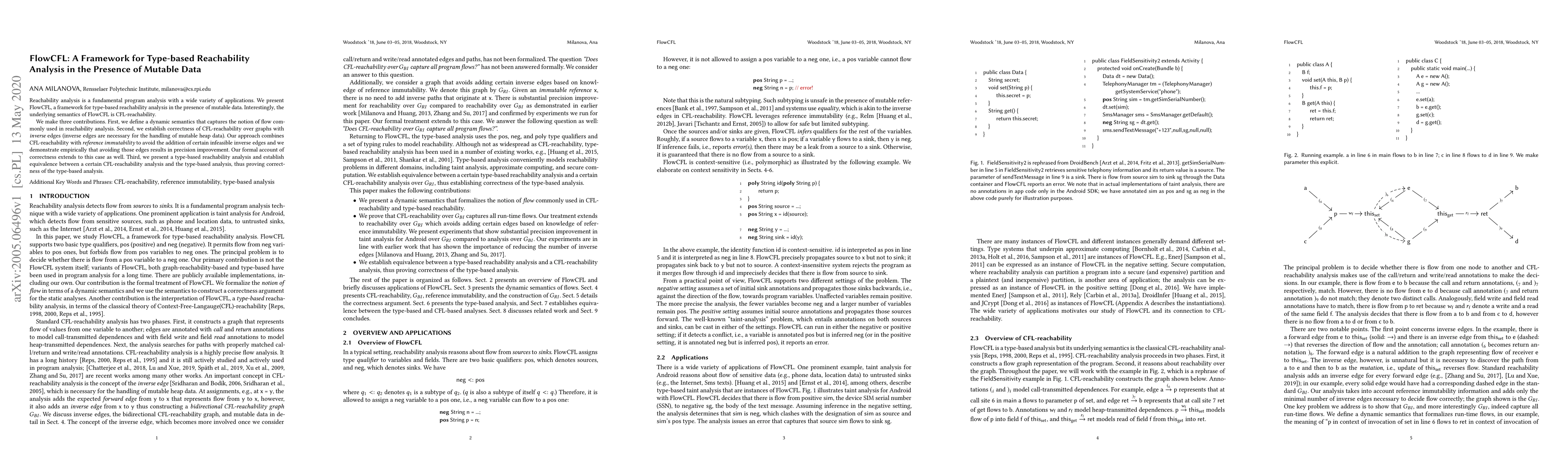 Reachability analysis is a fundamental program analysis with a wide variety of applications. We present FlowCFL, a framework for type-based reachability analysis in the presence of mutable data. Interestingly, the underlying semantics of FlowCFL is CFL-reachability. We make three contributions. First, we define a dynamic semantics that captures the notion of flow commonly used in reachability analysis. Second, we establish correctness of CFL-reachability over graphs with inverse edges (inverse edges are necessary for the handling of mutable heap data). Our approach combines CFL-reachability with reference immutability to avoid the addition of certain infeasible inverse edges and we demonstrate empirically that avoiding those edges results in precision improvement. Our formal account of correctness extends to this case as well. Third, we present a type-based reachability analysis and establish equivalence between a certain CFL-reachability analysis and the type-based analysis, thus proving correctness of the type-based analysis.