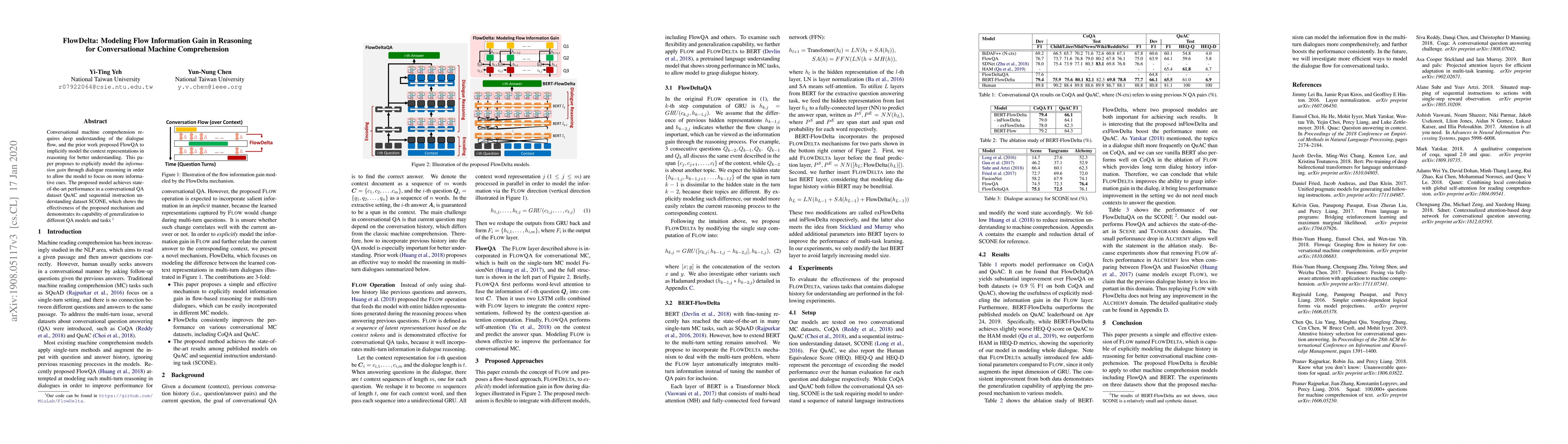 FlowDelta explicitly models flow information gain in conversational machine comprehension to highlight informative cues, achieving state-of-the-art results on QuAC and SCONE datasets, demonstrating its effectiveness and generalization across different QA models and tasks.