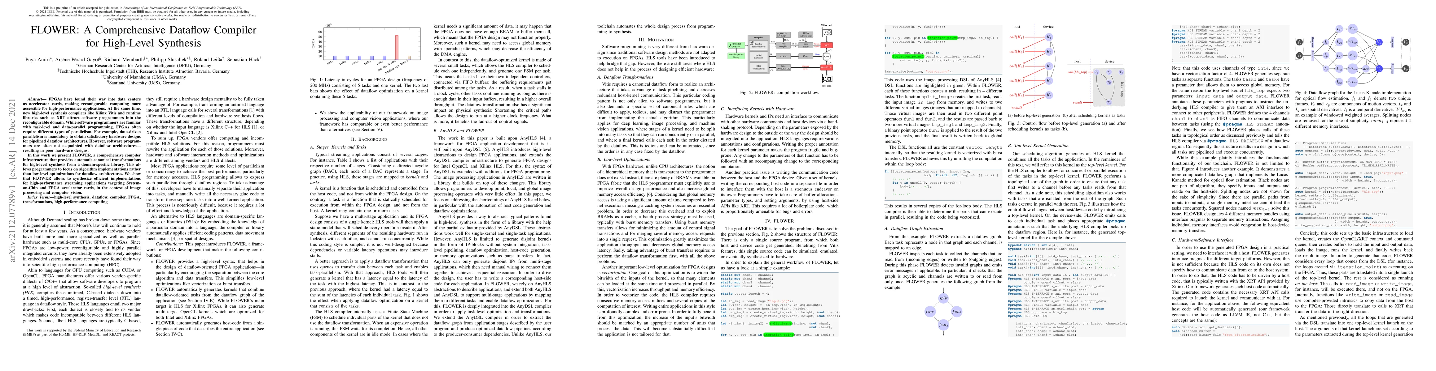 FLOWER is a comprehensive compiler infrastructure designed to facilitate high-level synthesis for FPGAs, enabling software programmers to implement efficient dataflow architectures without needing expertise in low-level optimizations. It synthesizes efficient implementations for high-performance streaming applications, particularly in image processing and computer vision.