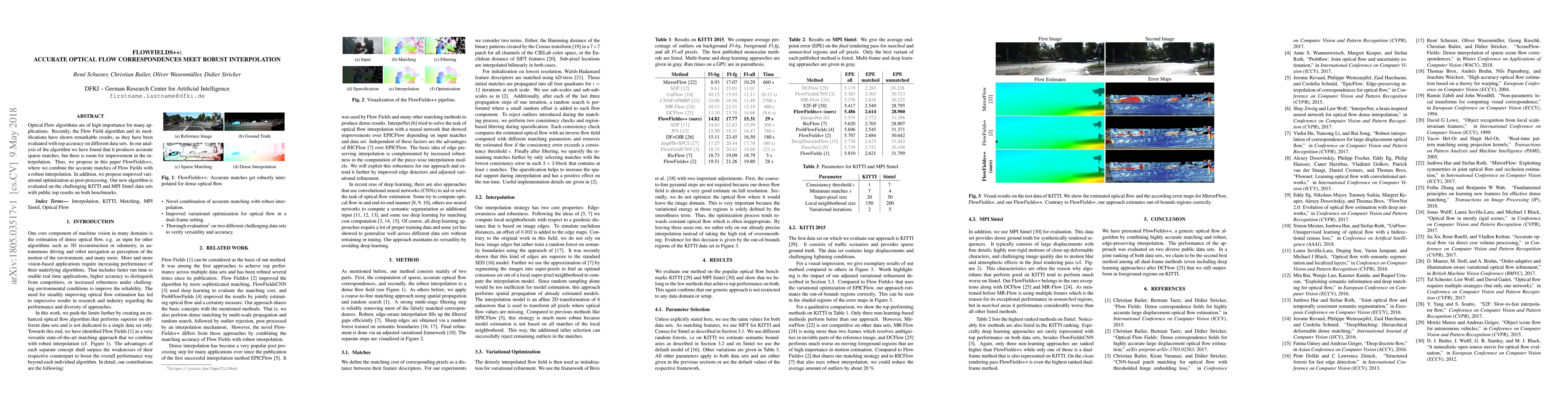 FlowFields++ combines accurate sparse optical flow matches from Flow Fields with robust interpolation and improved variational optimization, achieving top results on KITTI and MPI Sintel benchmarks. The enhanced algorithm addresses interpolation limitations while maintaining high accuracy.