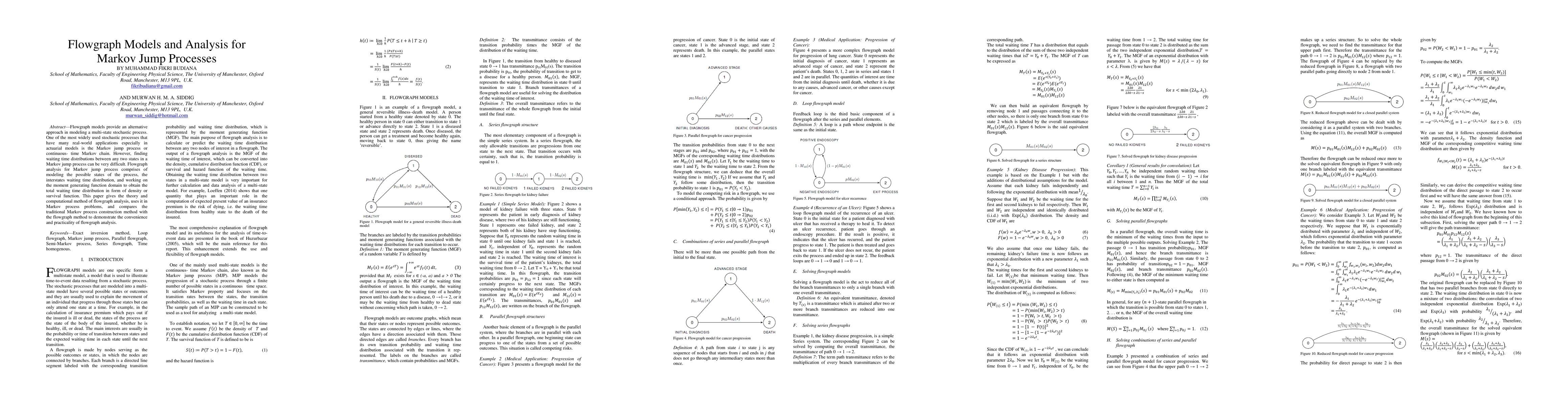 This paper introduces flowgraph models for analyzing Markov jump processes, providing a theoretical and computational method for determining waiting time distributions. It compares flowgraph analysis with traditional Markov process methods, demonstrating its practicality and convenience.