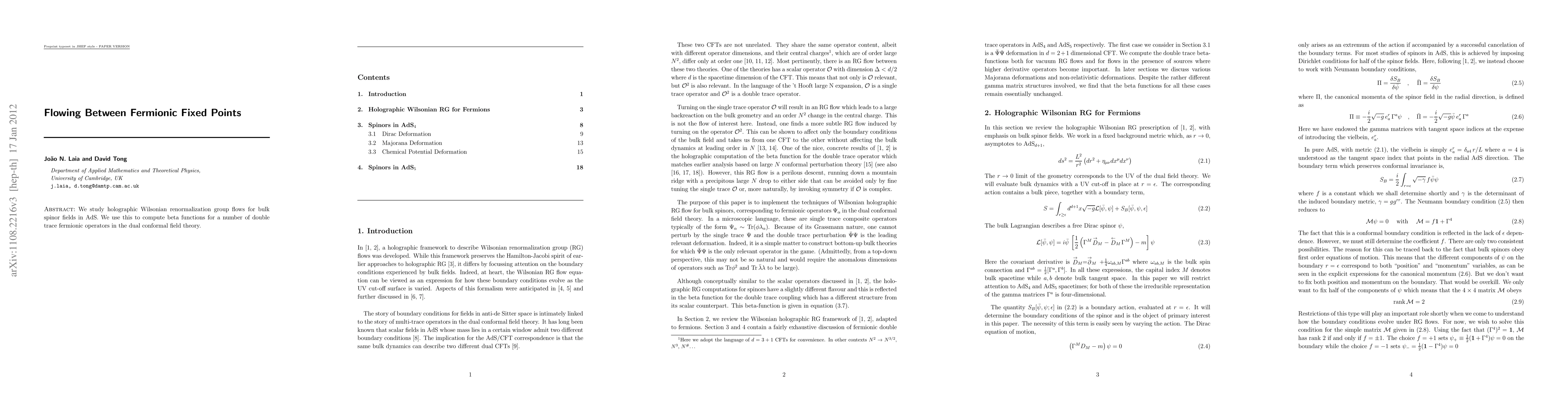 We study holographic Wilsonian renormalization group flows for bulk spinor fields in AdS. We use this to compute the all-loop beta function for fermionic double trace operators in the dual conformal field theory.