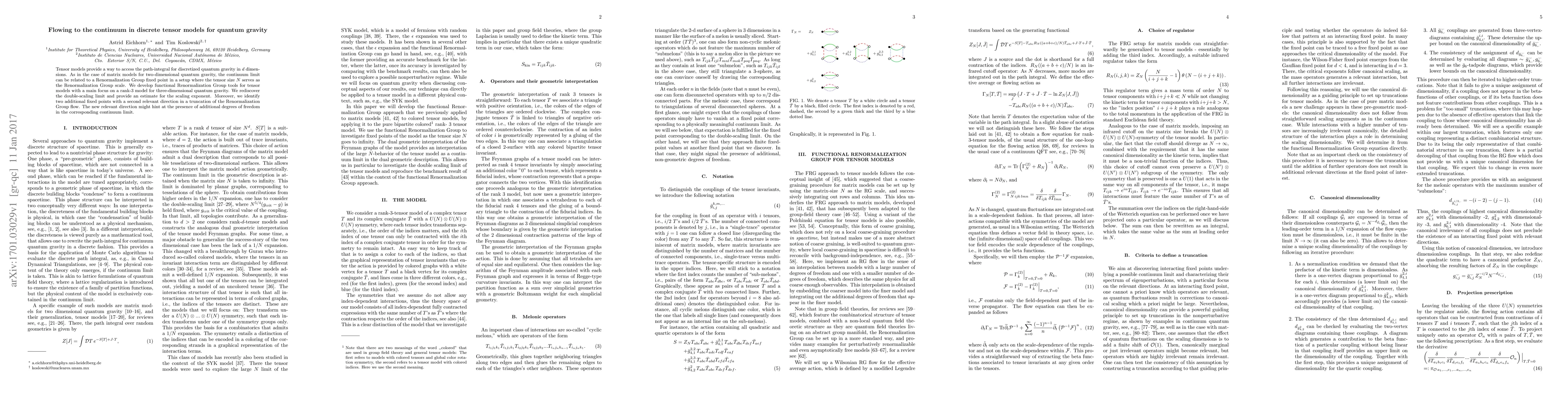 This paper develops functional Renormalization Group tools to study tensor models for quantum gravity, focusing on a rank-3 model for three-dimensional quantum gravity. It identifies new fixed points and a second relevant direction, suggesting additional degrees of freedom in the continuum limit.