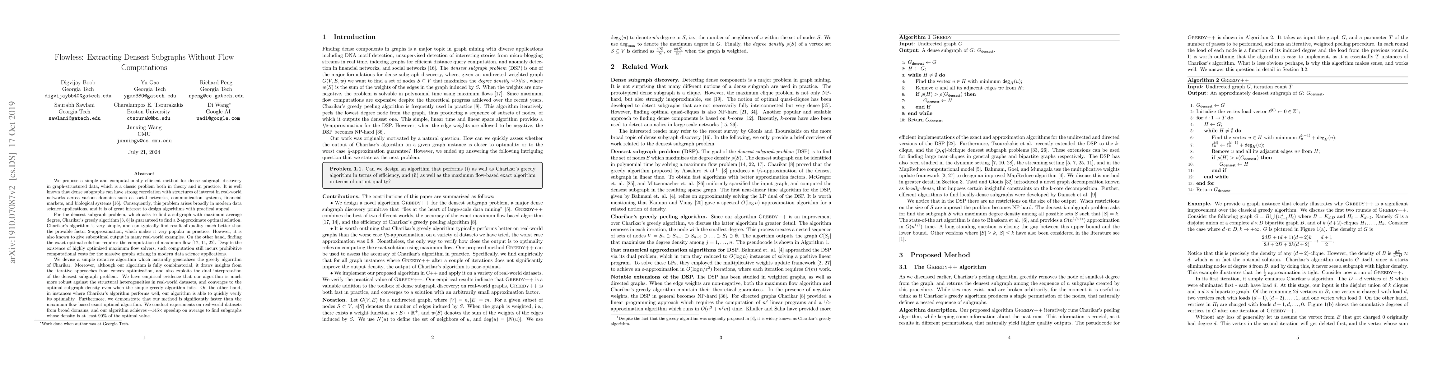This paper proposes a computationally efficient iterative algorithm for discovering dense subgraphs without relying on maximum flow computations, achieving significant speedups over existing methods while maintaining high subgraph density. The method generalizes Charikar's greedy algorithm and demonstrates robustness across diverse real-world datasets.