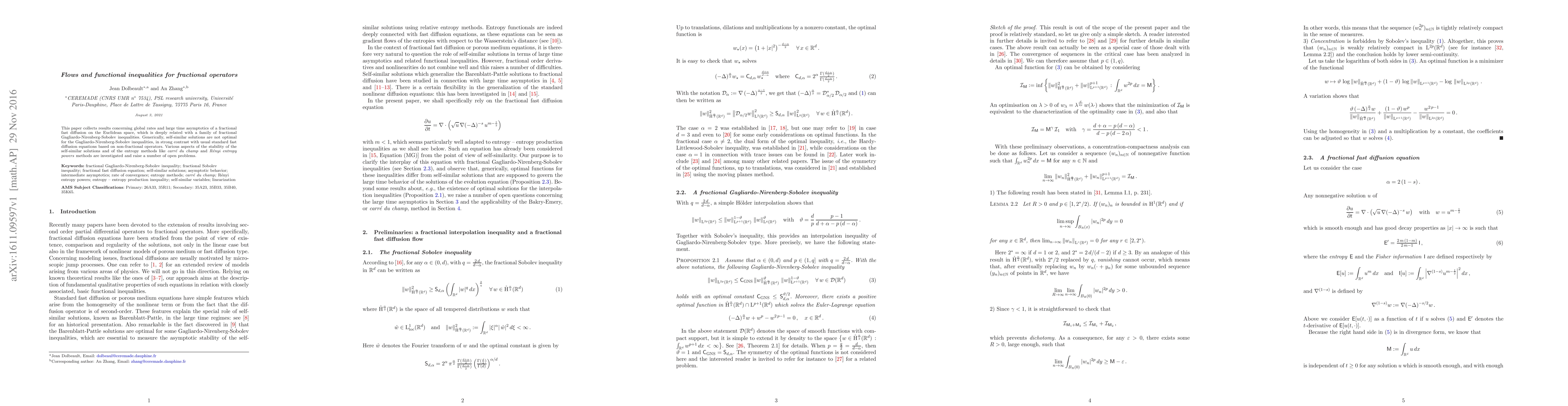 This paper collects results concerning global rates and large time asymptotics of a fractional fast diffusion on the Euclidean space, which is deeply related with a family of fractional Gagliardo-Nirenberg-Sobolev inequalities. Generically, self-similar solutions are not optimal for the Gagliardo-Nirenberg-Sobolev inequalities, in strong contrast with usual standard fast diffusion equations based on non-fractional operators. Various aspects of the stability of the self-similar solutions and of the entropy methods like carr{\'e} du champ and R{\'e}nyi entropy powers methods are investigated and raise a number of open problems.
