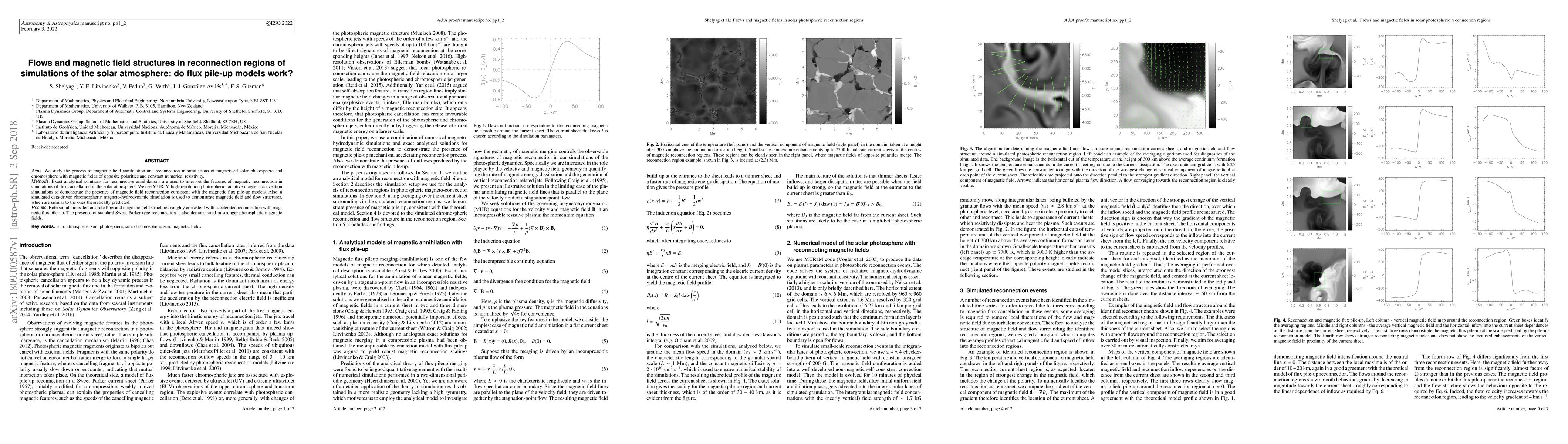 This paper investigates magnetic reconnection in simulations of the solar atmosphere, comparing observed flow and magnetic field structures to flux pile-up models. Results from high-resolution MURaM simulations show reconnection consistent with these models, while also demonstrating standard Sweet-Parker reconnection in stronger photospheric fields.