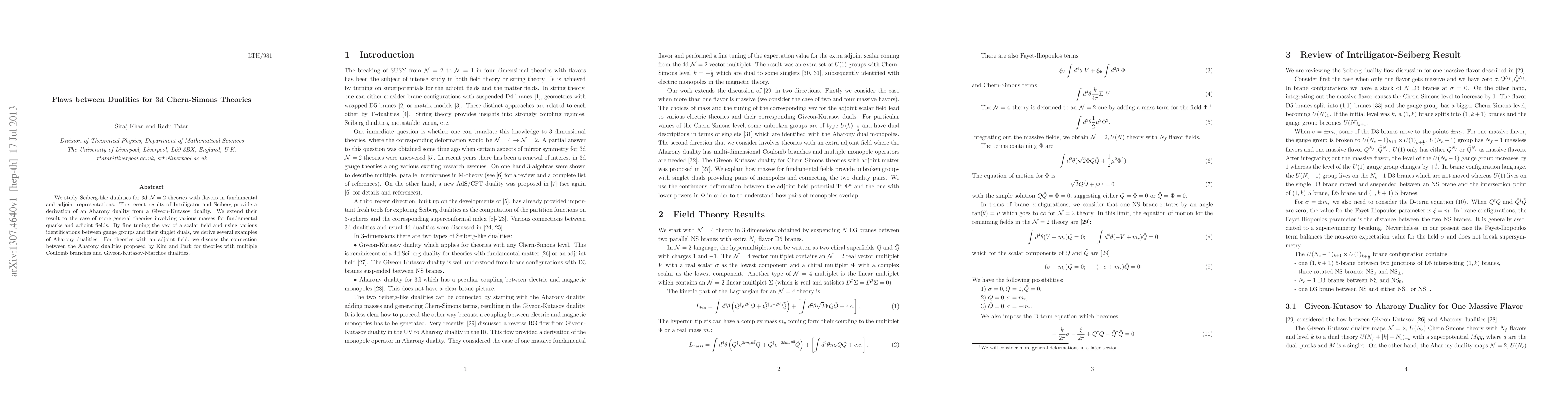 We study Seiberg-like dualities for 3d N=2 theories with flavors in fundamental and adjoint representations. The recent results of Intriligator and Seiberg provide a derivation of an Aharony duality from a Giveon-Kutasov duality. We extend their result to the case of more general theories involving various masses for fundamental quarks and adjoint fields. By fine tuning the vev of a scalar field and using various identifications between gauge groups and their singlet duals, we derive several examples of Aharony dualities. For theories with an adjoint field, we discuss the connection between the Aharony dualities proposed by Kim and Park for theories with multiple Coulomb branches and Giveon-Kutasov-Niarchos dualities.