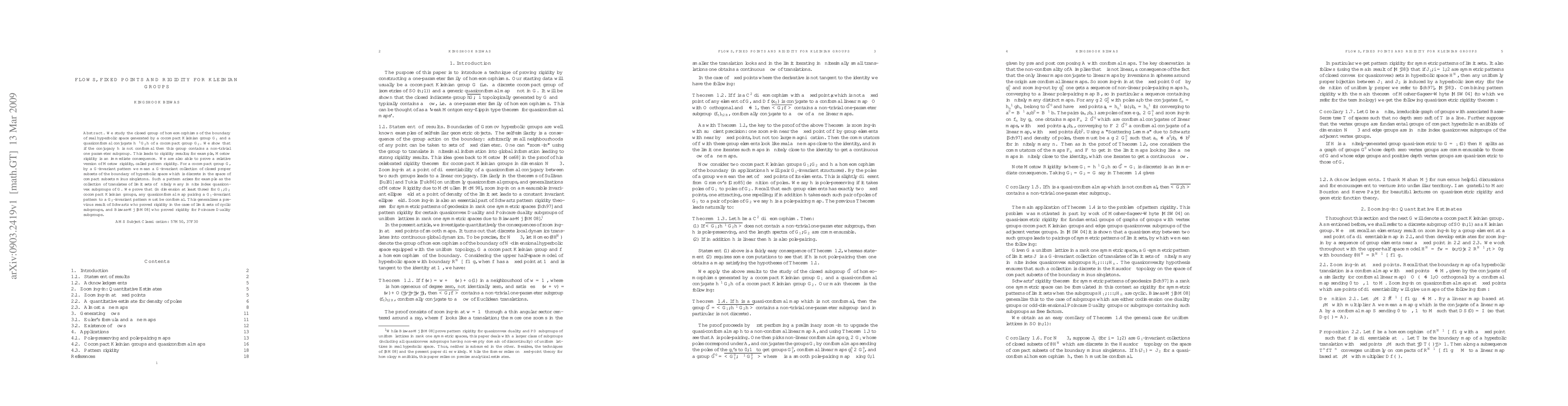We study the closed group of homeomorphisms of the boundary of real hyperbolic space generated by a cocompact Kleinian group $G_1$ and a quasiconformal conjugate $h^{-1}G_2 h$ of a cocompact group $G_2$. We show that if the conjugacy $h$ is not conformal then this group contains a non-trivial one parameter subgroup. This leads to rigidity results; for example, Mostow rigidity is an immediate consequence. We are also able to prove a relative version of Mostow rigidity, called pattern rigidity. For a cocompact group $G$, by a $G$-invariant pattern we mean a $G$-invariant collection of closed proper subsets of the boundary of hyperbolic space which is discrete in the space of compact subsets minus singletons. Such a pattern arises for example as the collection of translates of limit sets of finitely many infinite index quasiconvex subgroups of $G$. We prove that (in dimension at least three) for $G_1, G_2$ cocompact Kleinian groups, any quasiconformal map pairing a $G_1$-invariant pattern to a $G_2$-invariant pattern must be conformal. This generalizes a previous result of Schwartz who proved rigidity in the case of limit sets of cyclic subgroups, and Biswas-Mj who proved rigidity for Poincare Duality subgroups.