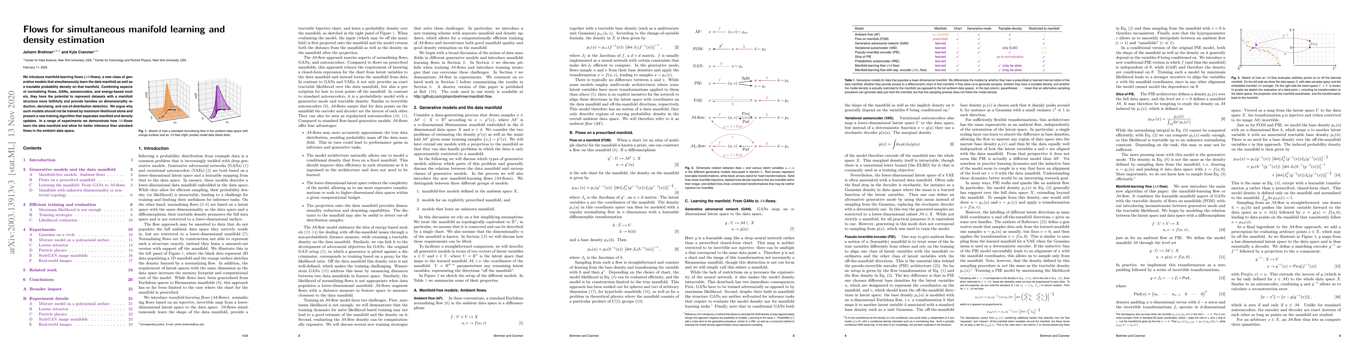This paper introduces manifold-learning flows (M-flows), a generative model combining normalizing flows, GANs, autoencoders, and energy-based models for simultaneous manifold learning and density estimation. The authors propose a new training algorithm that separates manifold and density updates, demonstrating improved inference over standard flows.