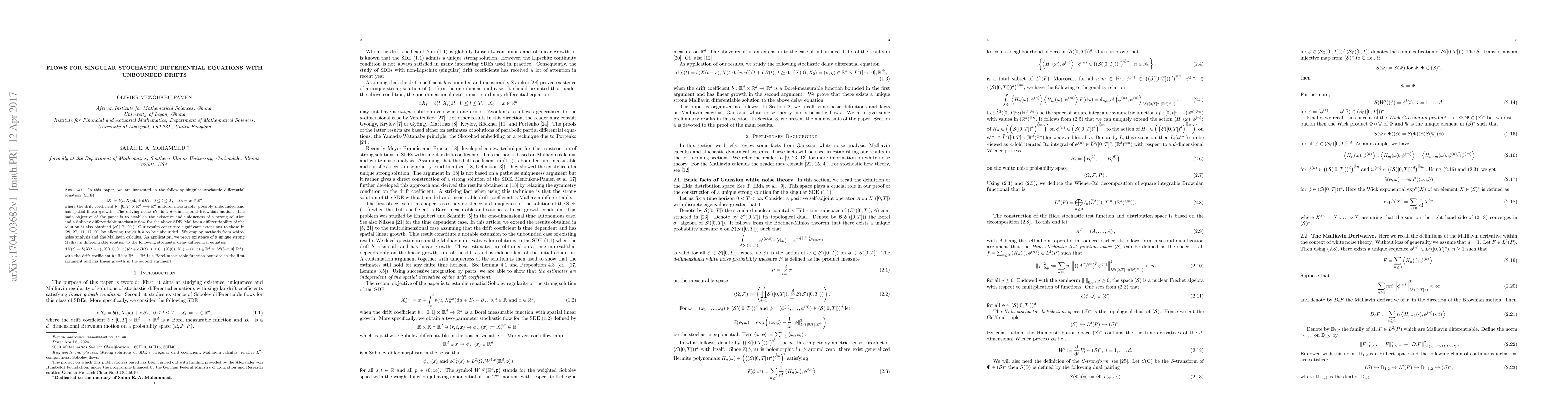 This paper establishes the existence and uniqueness of a strong solution and a Sobolev differentiable stochastic flow for singular stochastic differential equations with unbounded drifts, extending previous results to allow for unbounded drift coefficients.
