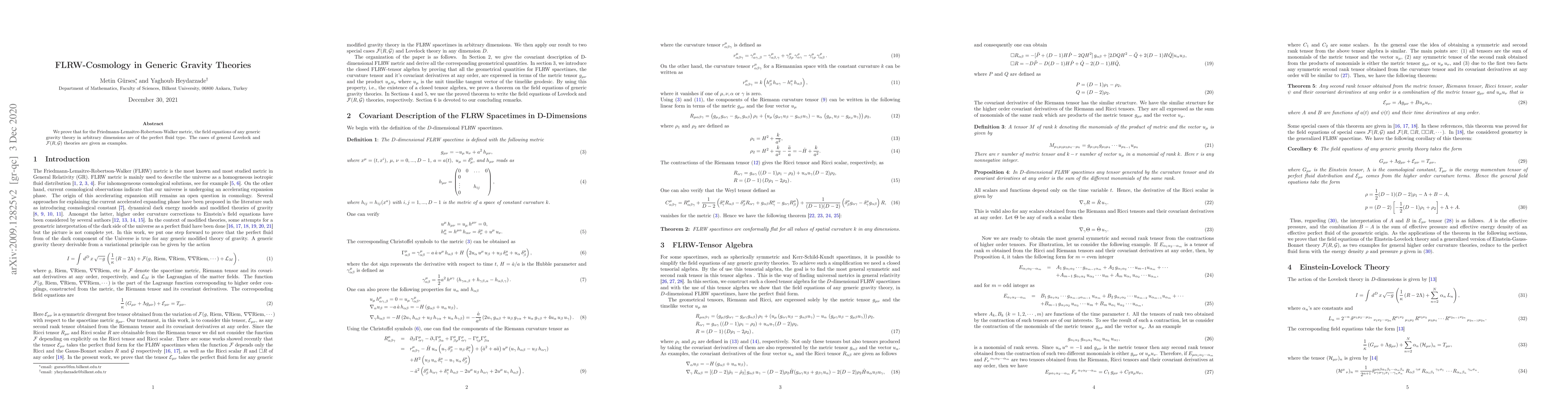 This paper proves that the field equations for the Friedmann-Lemaitre-Robertson-Walker metric in any generic gravity theory, including Lovelock and F(R,G) theories, simplify to the form of perfect fluid equations.