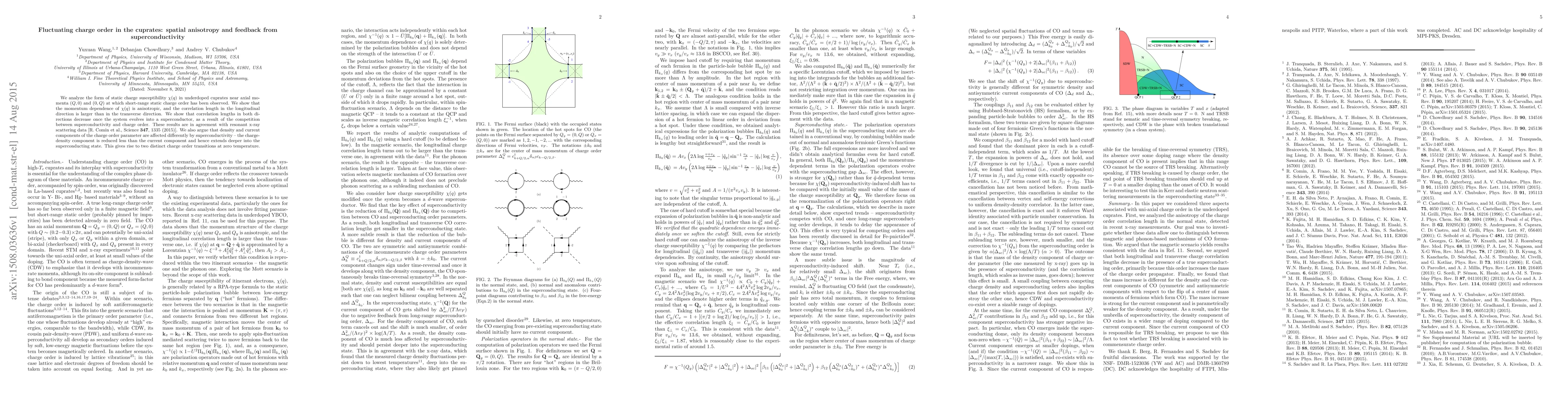 We analyze the form of static charge susceptibility $\chi(q)$ in underdoped cuprates near axial momenta $(Q,0)$ and $(0,Q)$ at which short-range static charge order has been observed. We show that the momentum dependence of $\chi (q)$ is anisotropic, and the correlation length in the longitudinal direction is larger than in the transverse direction. We show that correlation lengths in both directions decrease once the system evolves into a superconductor, as a result of the competition between superconductivity and charge order. These results are in agreement with resonant x-ray scattering data [R. Comin et al., Science 347, 1335 (2015)]. We also argue that density and current components of the charge order parameter are affected differently by superconductivity --- the charge-density component is reduced less than the current component and hence extends deeper into the superconducting state. This gives rise to two distinct charge order transitions at zero temperature.