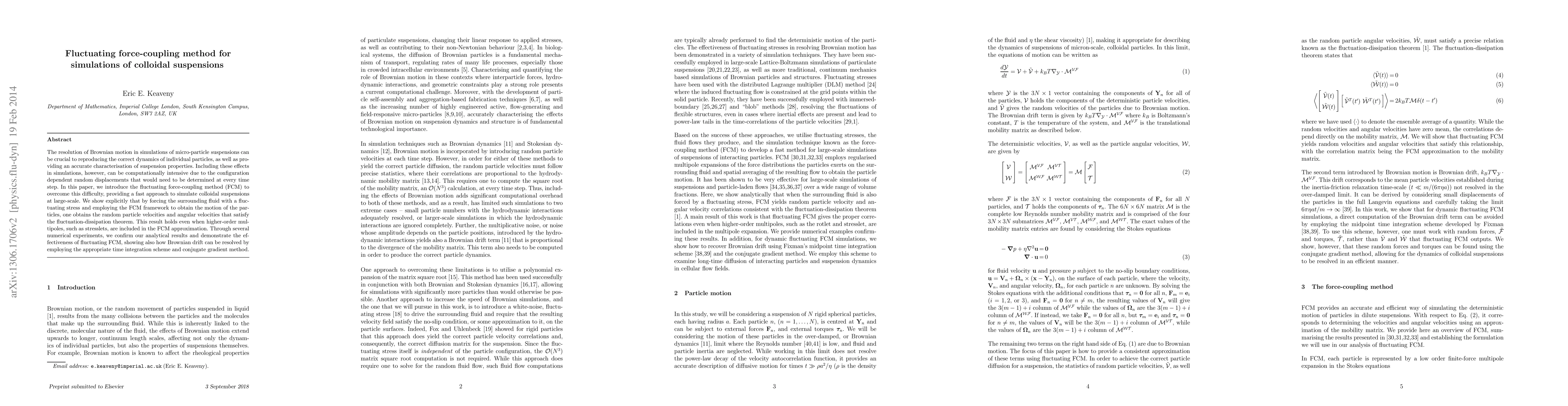 The fluctuating force-coupling method (FCM) is introduced to efficiently simulate colloidal suspensions, addressing the computational challenge of resolving Brownian motion. The FCM framework accurately captures random particle velocities and angular velocities, satisfying the fluctuation-dissipation theorem, and is validated through numerical experiments demonstrating its effectiveness in resolving Brownian drift.