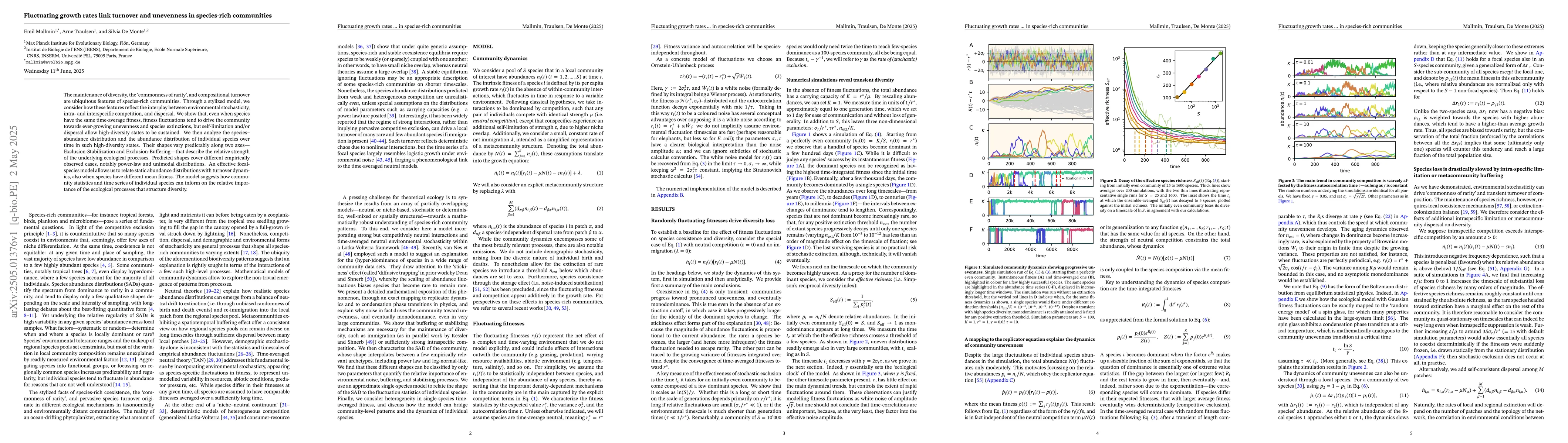The paper presents a novel theoretical framework linking fitness fluctuations, community unevenness, and species turnover through a stylized model.