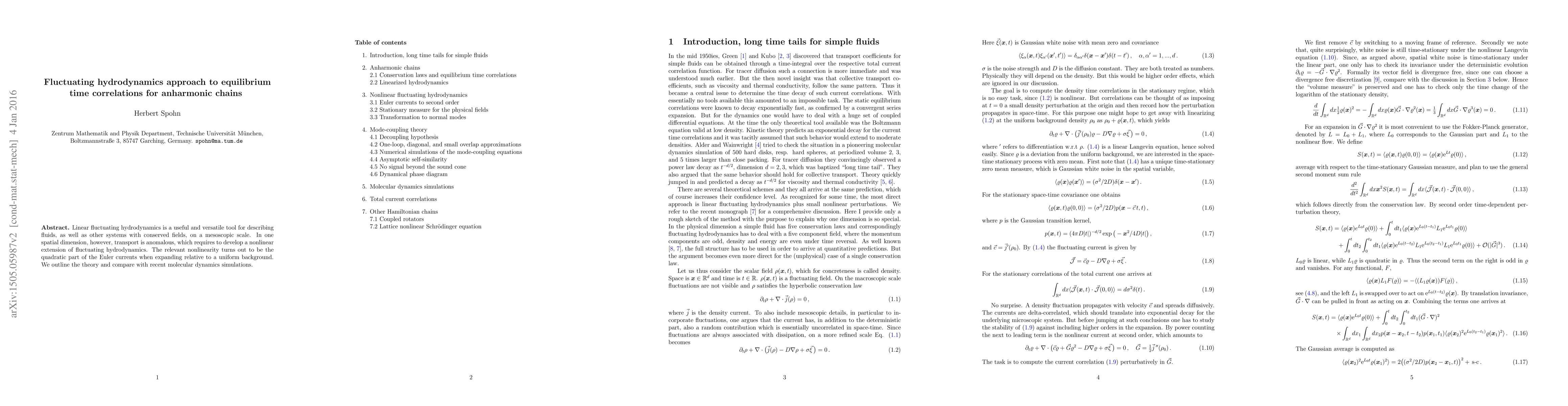 This paper develops a nonlinear extension of fluctuating hydrodynamics to describe equilibrium time correlations in anharmonic chains, focusing on the quadratic part of Euler currents to address anomalous transport in one spatial dimension. The theory is validated through comparison with molecular dynamics simulations.