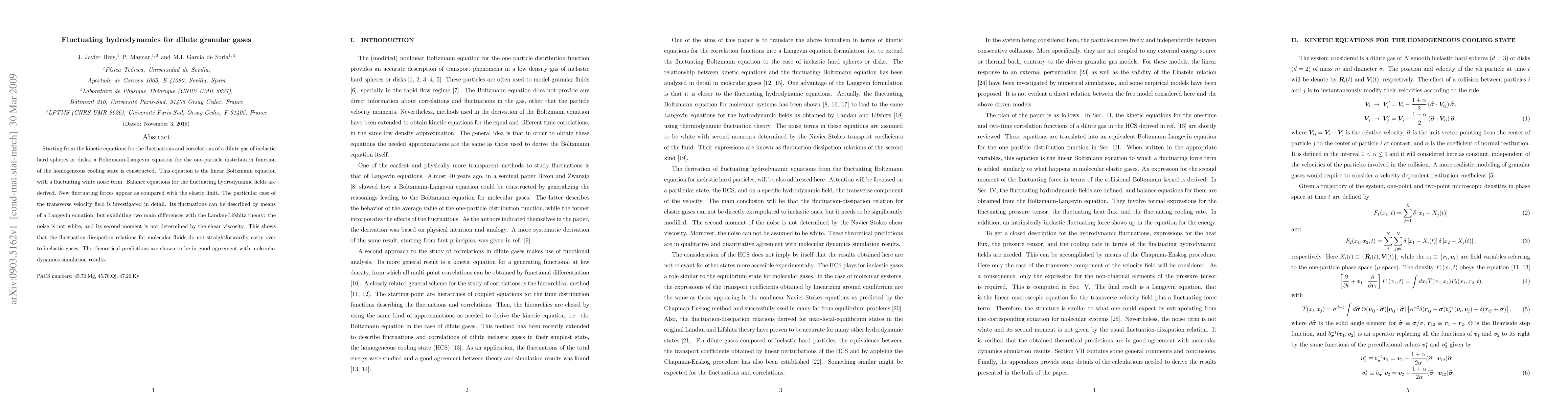 This paper develops a Boltzmann-Langevin equation for dilute granular gases, revealing new fluctuating forces and deviations from fluctuation-dissipation relations observed in elastic fluids. The theoretical predictions align well with molecular dynamics simulations, highlighting differences in fluctuating hydrodynamics for inelastic versus elastic systems.