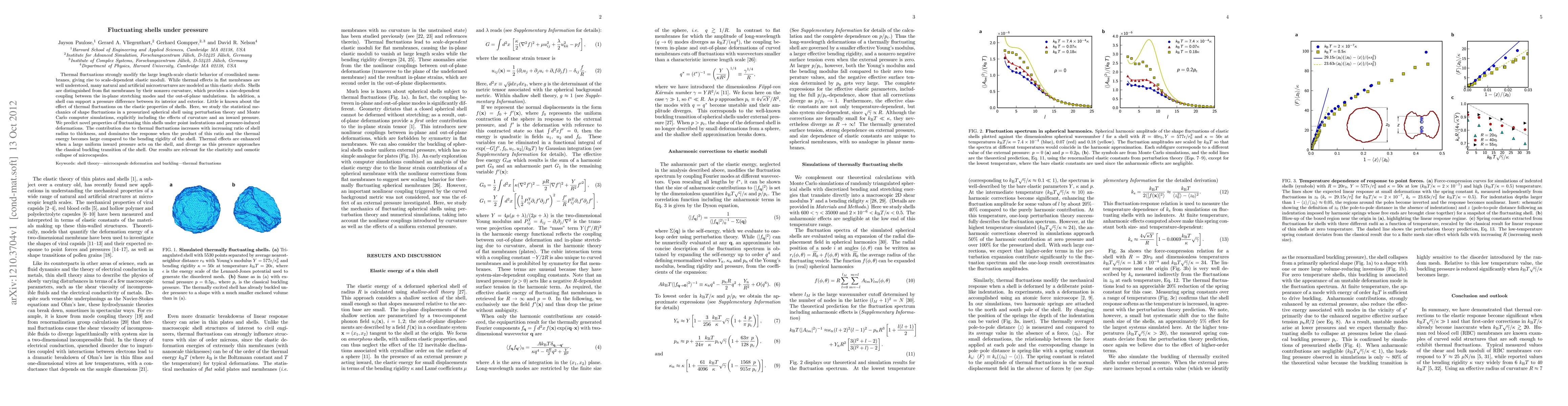 This paper investigates the impact of thermal fluctuations on the elastic behavior of pressurized spherical shells, revealing scale-dependent elastic moduli and enhanced effects under large inward pressure. The study combines perturbation theory and Monte Carlo simulations to predict novel properties of fluctuating shells, highlighting their significance for microcapsule elasticity and osmotic collapse.