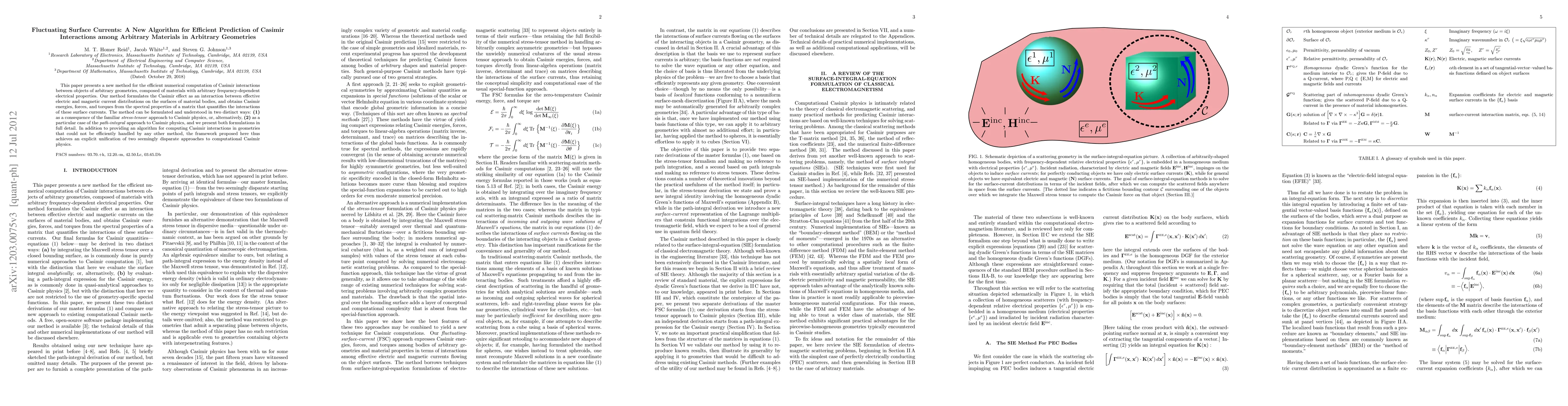 This paper introduces a novel algorithm for efficiently predicting Casimir interactions among objects of any geometry and material composition by modeling them as surface current interactions. The method unifies the stress-tensor and path-integral approaches to computational Casimir physics, offering a versatile tool for complex geometries.