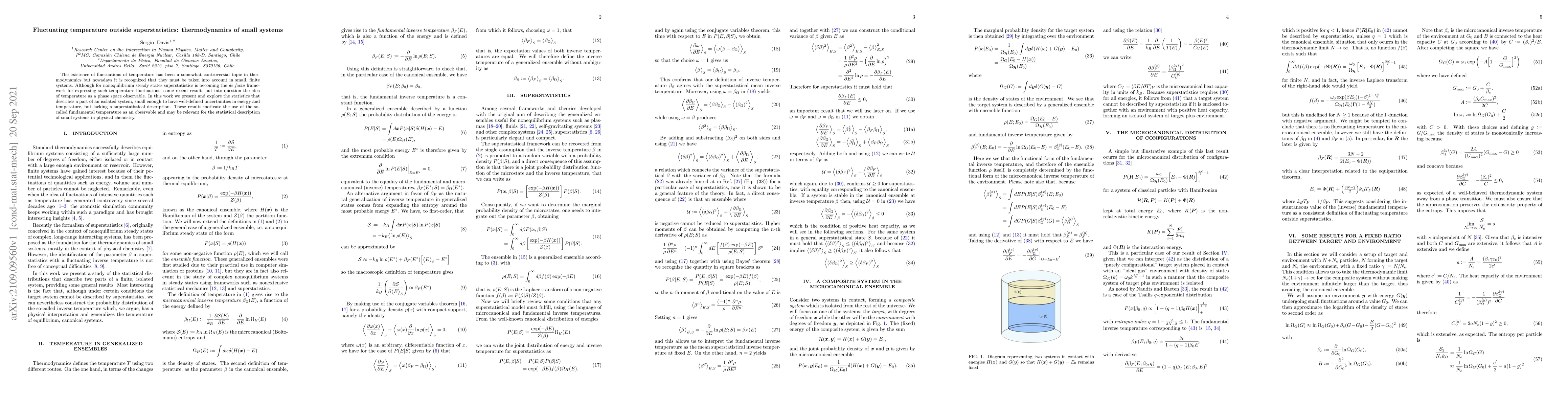 The existence of fluctuations of temperature has been a somewhat controversial topic in thermodynamics but nowadays it is recognized that they must be taken into account in small, finite systems. Although for nonequilibrium steady states superstatistics is becoming the \textit{de facto} framework for expressing such temperature fluctuations, some recent results put into question the idea of temperature as a phase space observable. In this work we present and explore the statistics that describes a part of an isolated system, small enough to have well-defined uncertainties in energy and temperature, but lacking a superstatistical description. These results motivate the use of the so-called fundamental temperature as an observable and may be relevant for the statistical description of small systems in physical chemistry.