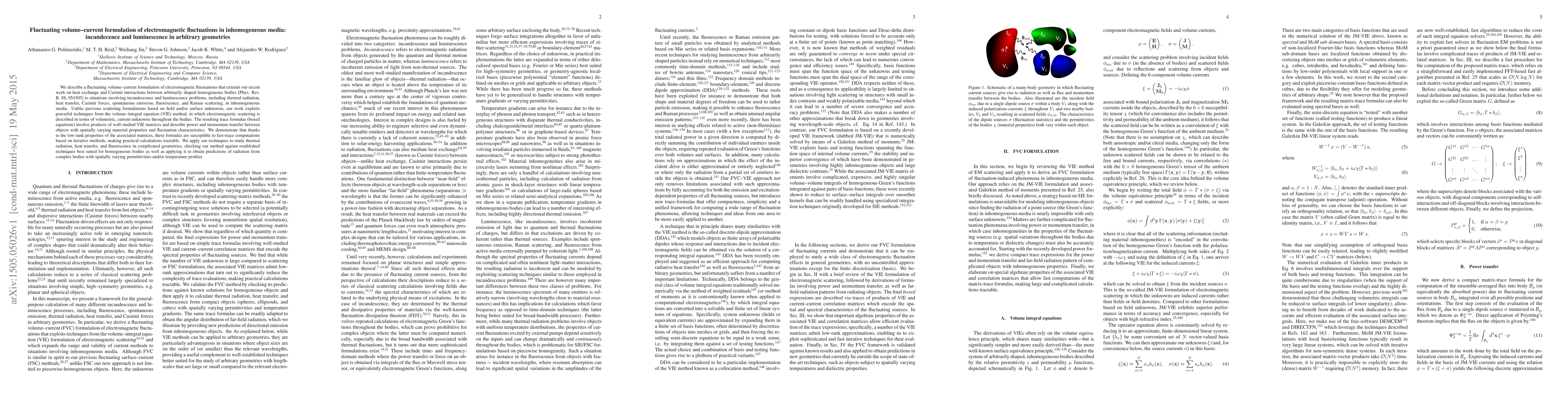 This paper presents a new fluctuating volume-current formulation for electromagnetic fluctuations in inhomogeneous media, extending previous work to include thermal radiation, heat transfer, and luminescence problems. The method uses powerful volume-integral equation techniques for fast-trace computations, enabling practical calculations in complex geometries.