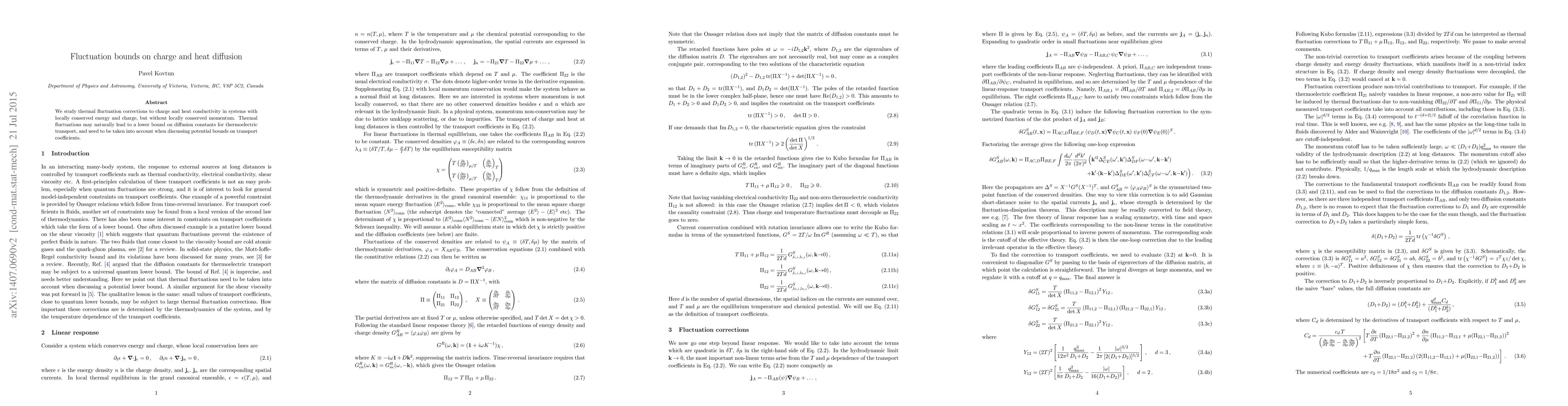 Summary: This paper investigates thermal fluctuation effects on charge and heat diffusion in systems lacking locally conserved momentum, establishing lower bounds on diffusion constants for thermoelectric transport due to these fluctuations. The findings highlight the importance of considering thermal fluctuations when discussing potential limits on transport coefficients.
