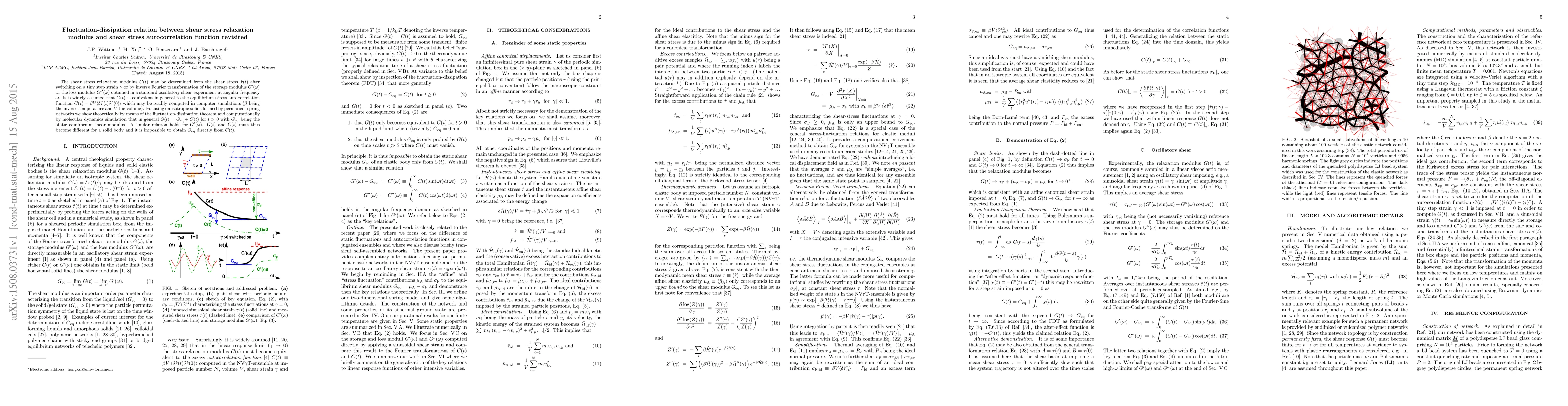 This paper revisits the fluctuation-dissipation relation between the shear stress relaxation modulus and the shear stress autocorrelation function, demonstrating theoretically and computationally that the shear stress relaxation modulus $G(t)$ is generally $G_{eq} + C(t)$ for $t > 0$, where $G_{eq}$ is the static equilibrium shear modulus, and $C(t)$ is the equilibrium stress autocorrelation function. Thus, $G(t)$ and $C(t)$ differ for solid bodies, making it impossible to obtain $G_{eq}$ directly from $C(t)$.