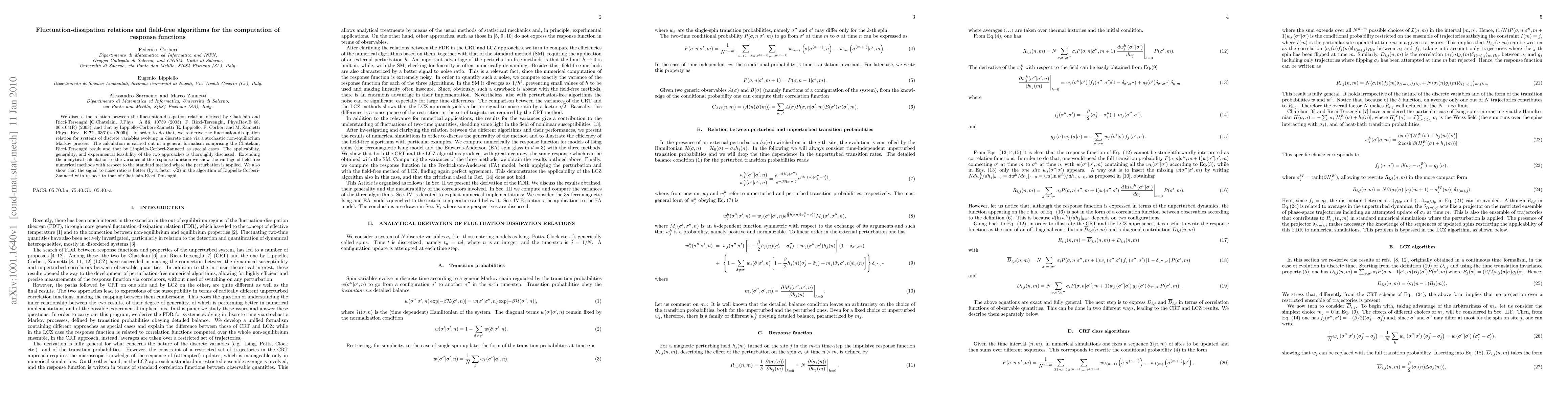 We discuss the relation between the fluctuation-dissipation relation derived by Chatelain and Ricci-Tersenghi [C.Chatelain, J.Phys. A {\bf 36}, 10739 (2003); F. Ricci-Tersenghi, Phys.Rev.E 68, 065104(R) (2003)] and that by Lippiello-Corberi-Zannetti [E. Lippiello, F. Corberi and M. Zannetti Phys. Rev. E {\bf 72}, 056103 (2005)]. In order to do that, we re-derive the fluctuation-dissipation relation for systems of discrete variables evolving in discrete time via a stochastic non-equilibrium Markov process. The calculation is carried out in a general formalism comprising the Chatelain, Ricci-Tersenghi result and that by Lippiello-Corberi-Zannetti as special cases. The applicability, generality, and experimental feasibility of the two approaches is thoroughly discussed. Extending the analytical calculation to the variance of the response function we show the vantage of field-free numerical methods with respect to the standard method where the perturbation is applied. We also show that the signal to noise ratio is better (by a factor $\sqrt 2$) in the algorithm of Lippiello-Corberi-Zannetti with respect to that of Chatelain-Ricci Tersenghi.