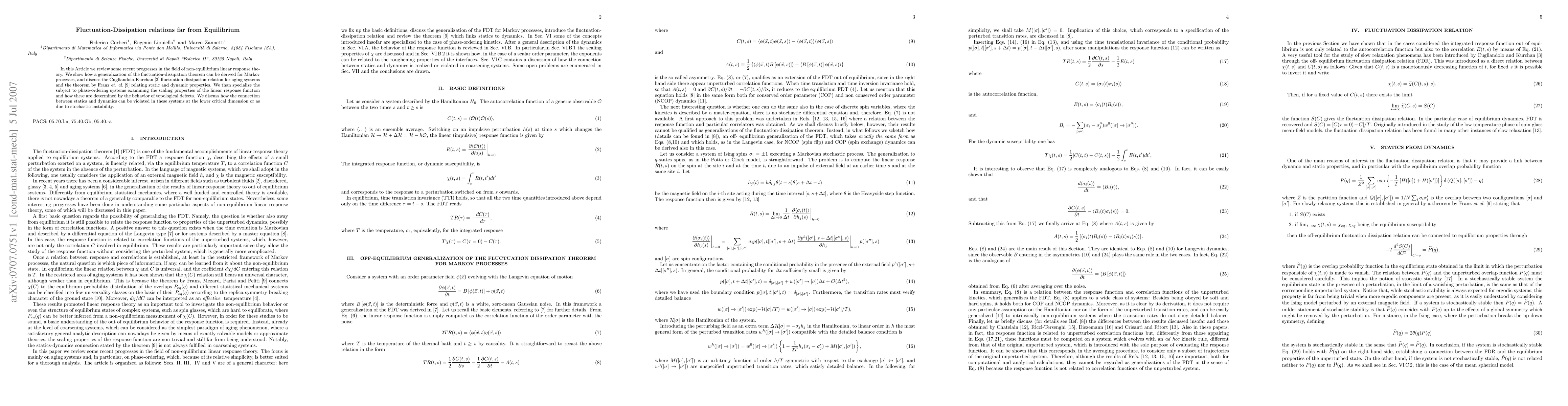 In this Article we review some recent progresses in the field of non-equilibrium linear response theory. We show how a generalization of the fluctuation-dissipation theorem can be derived for Markov processes, and discuss the Cugliandolo-Kurchan \cite{Cugliandolo93} fluctuation dissipation relation for aging systems and the theorem by Franz {\it et. al.} \cite{Franz98} relating static and dynamic properties. We than specialize the subject to phase-ordering systems examining the scaling properties of the linear response function and how these are determined by the behavior of topological defects. We discuss how the connection between statics and dynamics can be violated in these systems at the lower critical dimension or as due to stochastic instability.