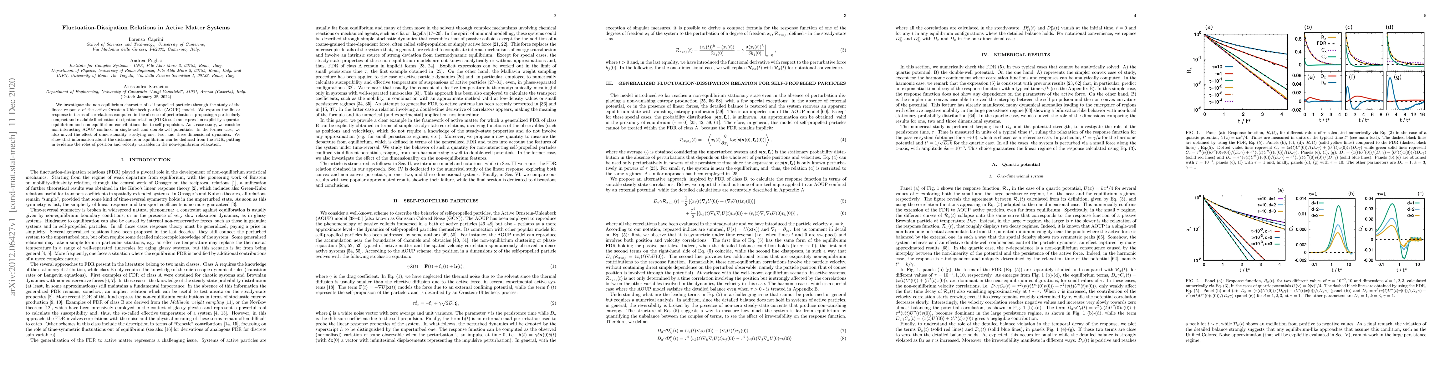 This paper explores the linear response of self-propelled active particles in the Ornstein-Uhlenbeck model, proposing a clear fluctuation-dissipation relation that distinguishes equilibrium and non-equilibrium effects due to self-propulsion. The study reveals how dimensionality influences non-equilibrium relaxation, highlighting the roles of position and velocity in active matter systems.