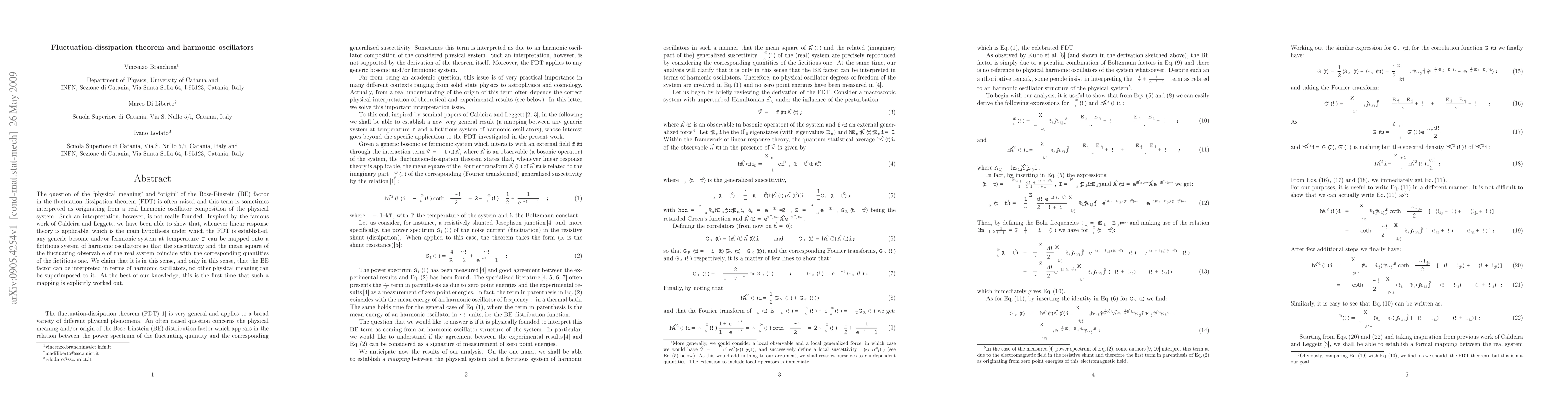 The question of the "physical meaning" and "origin" of the Bose-Einstein (BE) factor in the fluctuation-dissipation theorem (FDT) is often raised and this term is sometimes interpreted as originating from a real harmonic oscillator composition of the physical system. Such an interpretation, however, is not really founded. Inspired by the famous work of Caldeira and Leggett, we have been able to show that, whenever linear response theory is applicable, which is the main hypothesis under which the FDT is established, any generic bosonic and/or fermionic system at temperature $T$ can be mapped onto a fictitious system of harmonic oscillators so that the suscettivity and the mean square of the fluctuating observable of the real system coincide with the corresponding quantities of the fictitious one. We claim that it is in this sense, and only in this sense, that the BE factor can be interpreted in terms of harmonic oscillators, no other physical meaning can be superimposed to it. At the best of our knowledge, this is the first time that such a mapping is explicitly worked out.
