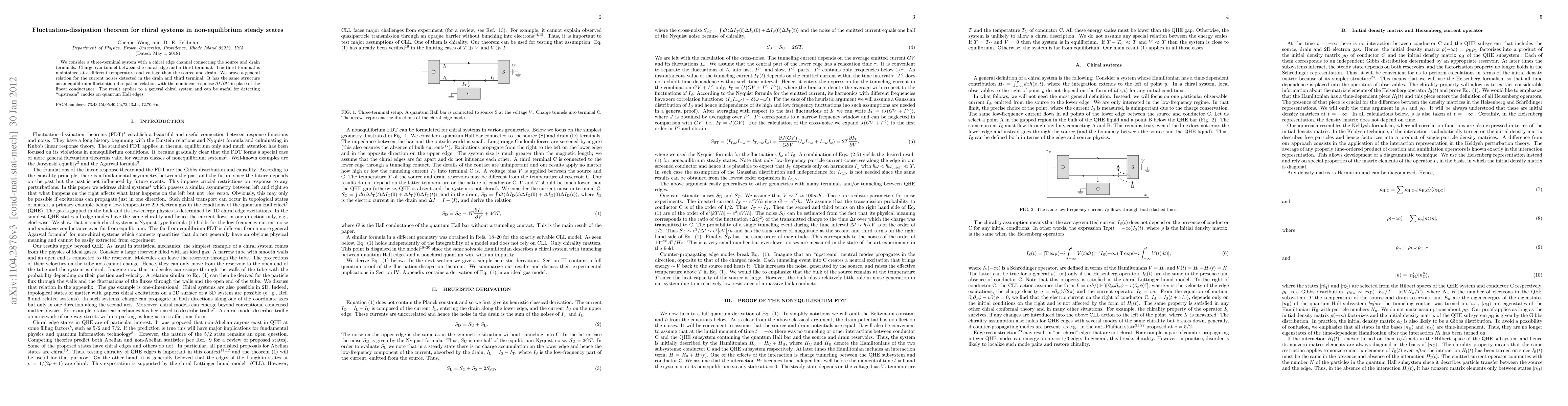 We consider a three-terminal system with a chiral edge channel connecting the source and drain terminals. Charge can tunnel between the chiral edge and a third terminal. The third terminal is maintained at a different temperature and voltage than the source and drain. We prove a general relation for the current noises detected in the drain and third terminal. It has the same structure as an equilibrium fluctuation-dissipation relation with the nonlinear response in place of the linear conductance. The result applies to a general chiral system and can be useful for detecting "upstream" modes on quantum Hall edges.