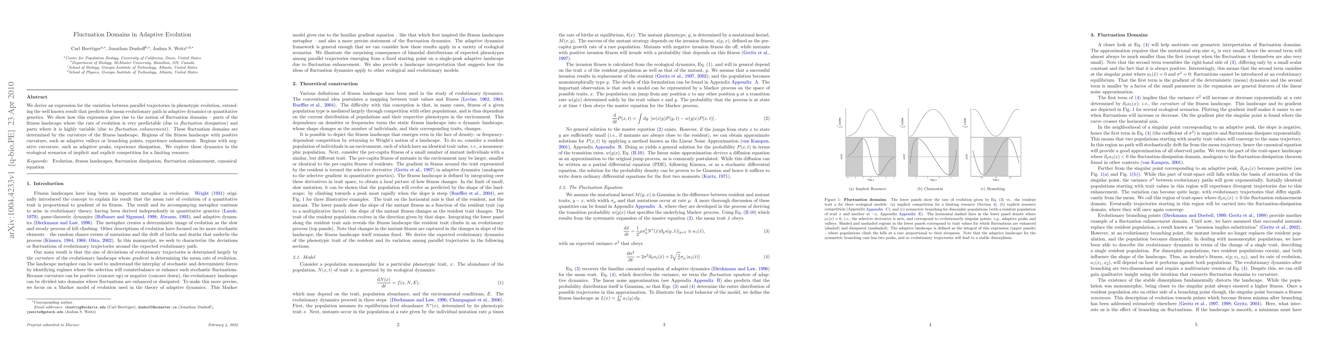 We derive an expression for the variation between parallel trajectories in phenotypic evolution, extending the well known result that predicts the mean evolutionary path in adaptive dynamics or quantitative genetics. We show how this expression gives rise to the notion of fluctuation domains - parts of the fitness landscape where the rate of evolution is very predictable (due to fluctuation dissipation) and parts where it is highly variable (due to fluctuation enhancement). These fluctuation domains are determined by the curvature of the fitness landscape. Regions of the fitness landscape with positive curvature, such as adaptive valleys or branching points, experience enhancement. Regions with negative curvature, such as adaptive peaks, experience dissipation. We explore these dynamics in the ecological scenarios of implicit and explicit competition for a limiting resource.