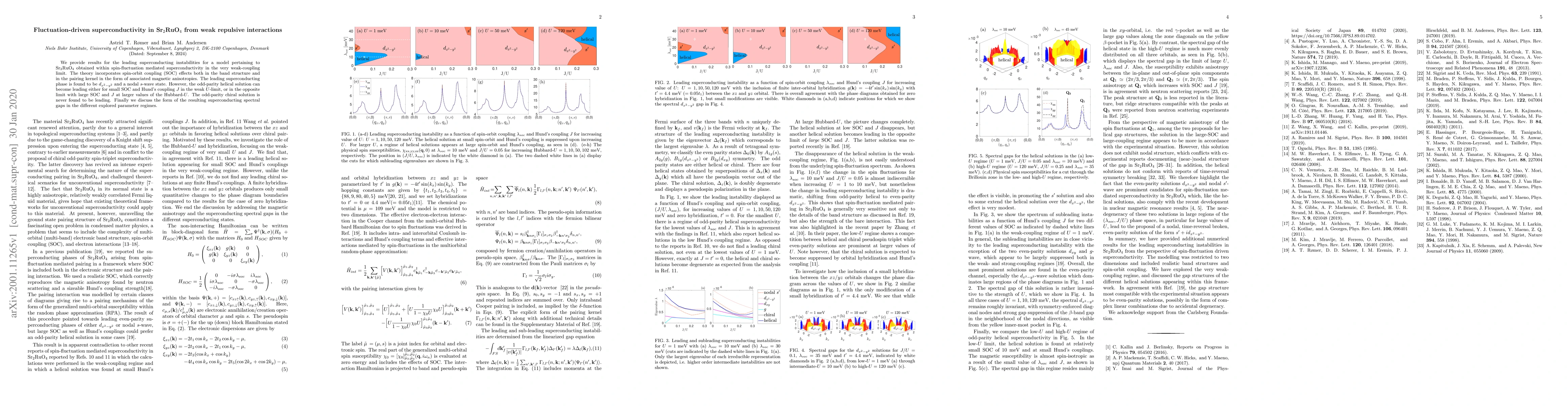 Research on Sr2RuO4 reveals a superconducting phase driven by fluctuation-mediated interactions, with two leading phases: d_{x^2-y^2} and a nodal s-wave state, and an odd-parity helical solution that emerges under specific conditions.