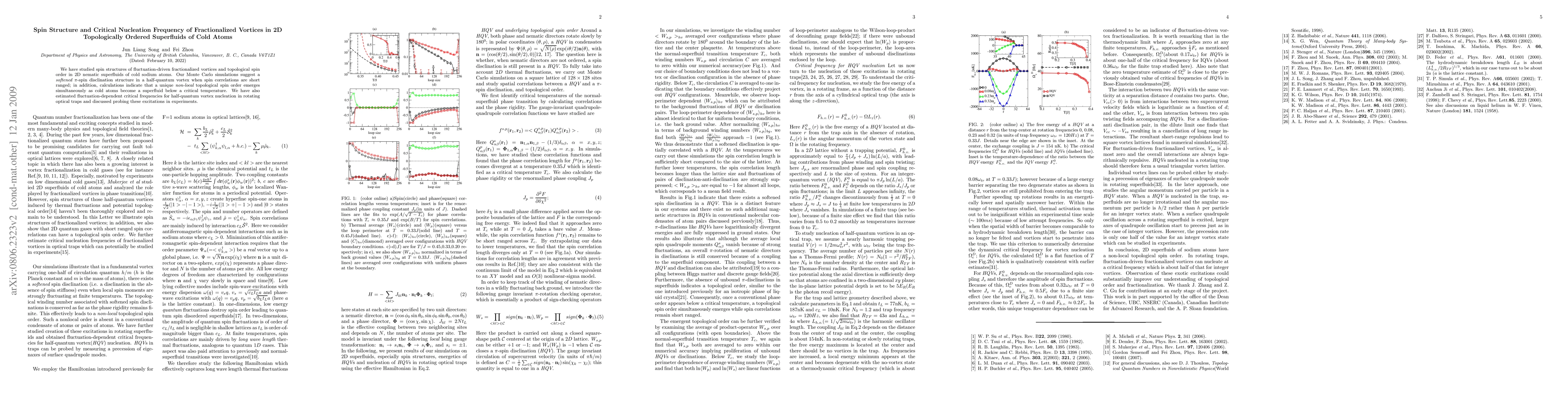 We have studied spin structures of fluctuation-driven fractionalized vortices and topological spin order in 2D nematic superfluids of cold sodium atoms. Our Monte Carlo simulations suggest a softened pi-spin disclination structure in a half-quantum vortex when spin correlations are short ranged; in addition, calculations indicate that a unique non-local topological spin order emerges simultaneously as cold atoms become a superfluid below a critical temperature. We have also estimated fluctuation-dependent critical frequencies for half-quantum vortex nucleation in rotating optical traps and discussed probing these excitations in experiments.