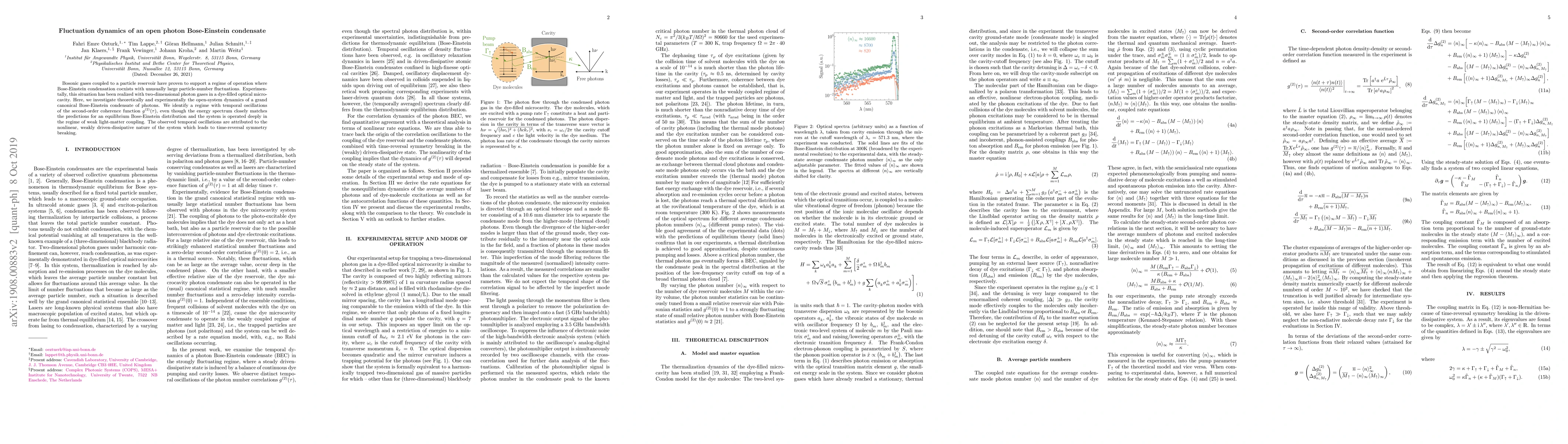 This paper investigates the dynamics of an open photon Bose-Einstein condensate, revealing temporal oscillations in the second-order coherence function despite matching equilibrium predictions. The oscillations are attributed to the system's nonlinear, weakly driven-dissipative nature causing time-reversal symmetry breaking.