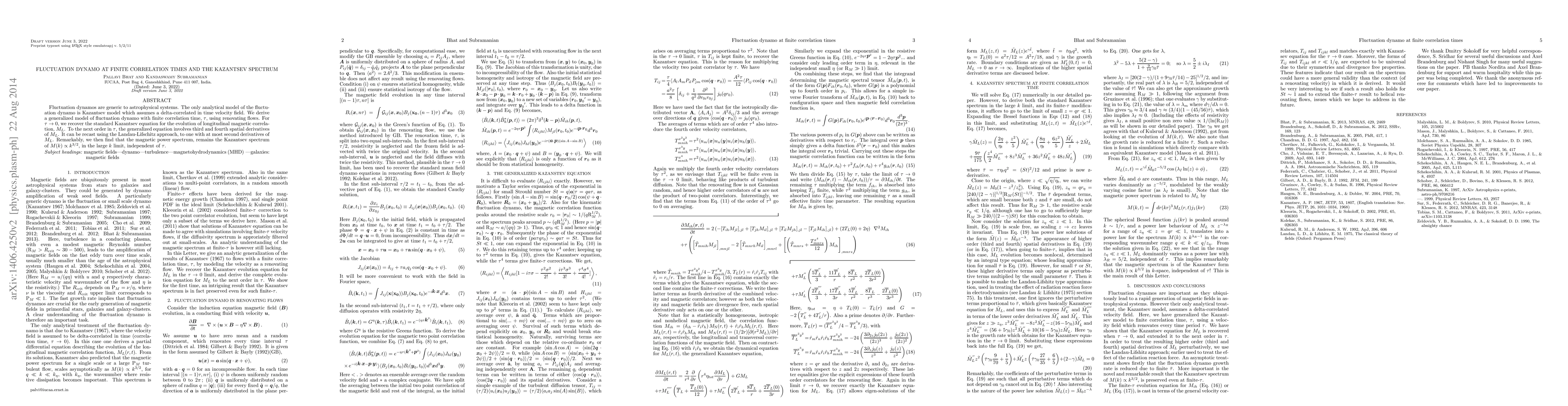 This paper generalizes the Kazantsev model of fluctuation dynamos to include finite correlation times, deriving a new equation that retains the Kazantsev spectrum for magnetic power, $M(k) \propto k^{3/2}$, even with non-zero correlation times. The model uses renovating flows to account for the time-dependent velocity field.