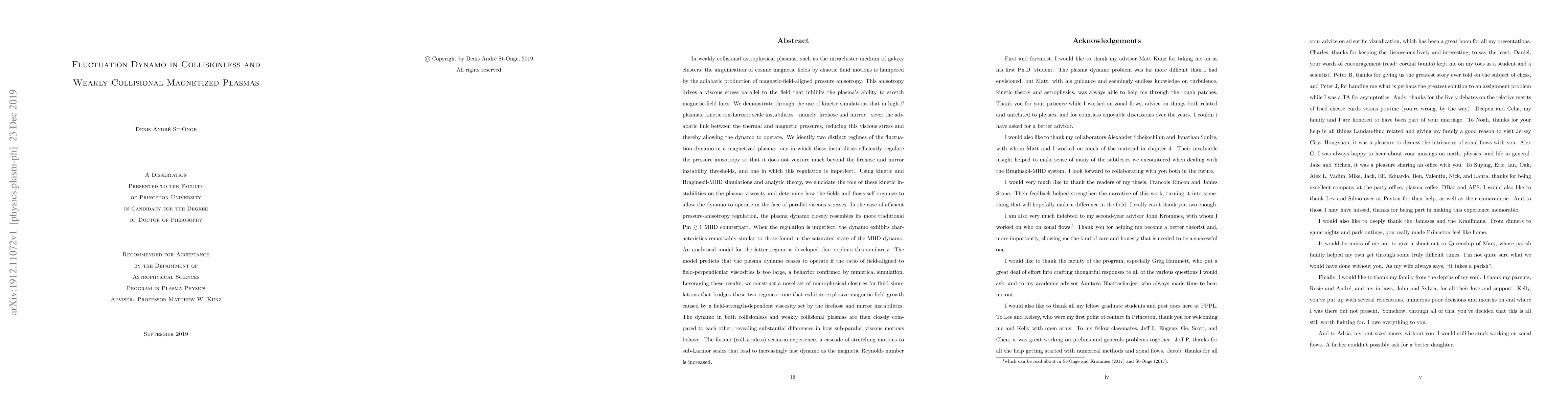 In weakly collisional astrophysical plasmas, such as the intracluster medium of galaxy clusters, the amplification of cosmic magnetic fields by chaotic fluid motions is hampered by the adiabatic production of magnetic-field-aligned pressure anisotropy. This anisotropy drives a viscous stress parallel to the field that inhibits the plasma's ability to stretch magnetic-field lines. I demonstrate through the use of kinetic simulations that in high-$\beta$ plasmas, kinetic ion-Larmor scale instabilities sever the adiabatic link between the thermal and magnetic pressures, reducing this viscous stress and thereby allowing the dynamo to operate. Two distinct regimes of the fluctuation dynamo in a magnetized plasma are identified: one in which these instabilities efficiently regulate the pressure anisotropy and one in which this regulation is imperfect. I elucidate the role of these kinetic instabilities on the plasma viscosity and determine how the fields and flows self-organize to allow the dynamo to operate in the face of parallel viscous stresses. In the case of efficient pressure-anisotropy regulation, the plasma dynamo closely resembles its more traditional Pm ~ 1 MHD counterpart. When the regulation is imperfect, the dynamo exhibits characteristics remarkably similar to those found in the saturated state of the MHD dynamo. A novel set of microphysical closures for fluid simulations that bridges these two regimes are constructed, exhibiting explosive magnetic-field growth caused by a field-strength-dependent viscosity. The dynamos in both collisionless and weakly collisional plasmas are then closely compared to each other, revealing substantial differences in how sub-parallel viscous motions behave. The former (collisionless) scenario experiences a cascade of stretching motions to sub-Larmor scales that lead to increasingly fast dynamo as the magnetic Reynolds number is increased.