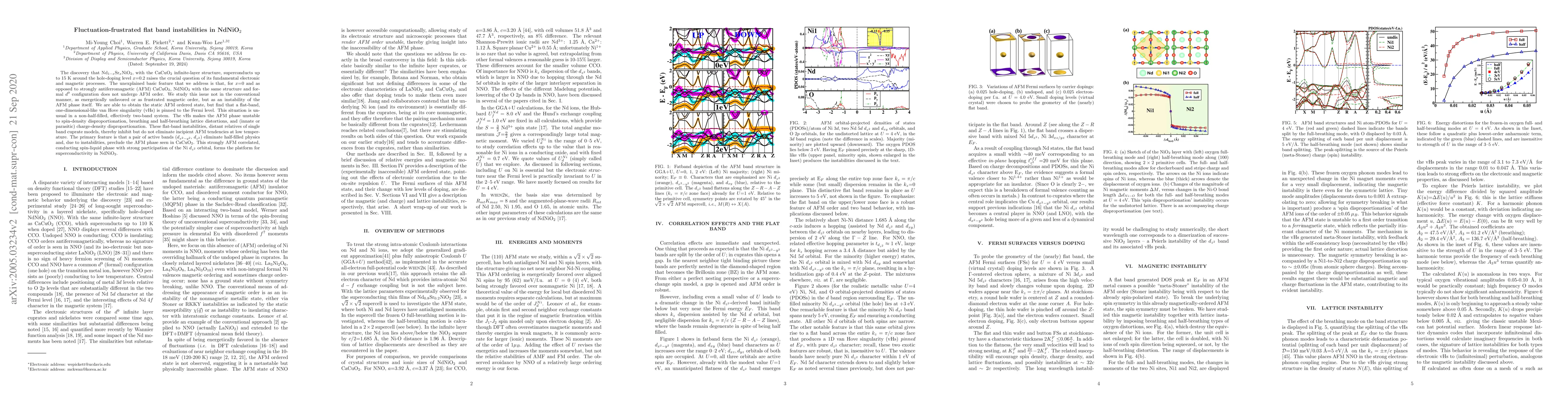 The discovery that Nd$_{1-x}$Sr$_x$NiO$_2$, with the CaCuO$_2$ infinite-layer structure, superconducts up to 15 K around the hole-doping level $x$=0.2 raises the crucial question of its fundamental electronic and magnetic processes. The unexplained basic feature that we address is that, for $x$=0 and as opposed to strongly antiferromagnetic (AFM) CaCuO$_2$, NdNiO$_2$ with the same structure and formal $d^9$ configuration does not undergo AFM order. We study this issue not in the conventional manner, as energetically unfavored or as frustrated magnetic order, but as an instability of the AFM phase itself. We are able to obtain the static AFM ordered state, but find that a flat-band, one-dimensional-like van Hove singularity (vHs) is pinned to the Fermi level. This situation is unusual in a non-half-filled, effectively two-band system. The vHs makes the AFM phase unstable to spin-density disproportionation, breathing and half-breathing lattice distortions, and (innate or parasitic) charge-density disproportionation. These flat-band instabilities, distant relatives of single band cuprate models, thereby inhibit but do not eliminate incipient AFM tendencies at low temperature. The primary feature is that a pair of active bands ($d_{x^2-y^2}$, $d_{z^2})$ eliminate half-filled physics and, due to instabilities, preclude the AFM phase seen in CaCuO$_2$. This strongly AFM correlated, conducting spin-liquid phase with strong participation of the Ni $d_{z^2}$ orbital, forms the platform for superconductivity in NdNiO$_2$.