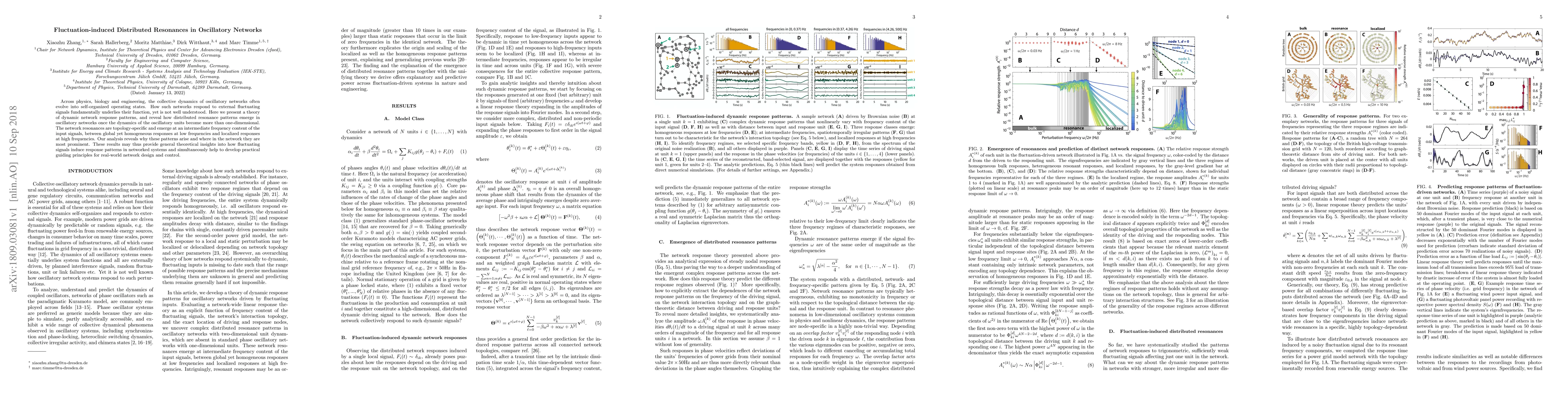Self-organized network dynamics prevails for systems across physics, biology and engineering. How external signals generate distributed responses in networked systems fundamentally underlies their function, yet is far from fully understood. Here we analyze the dynamic response patterns of oscillatory networks to fluctuating input signals. We disentangle the impact of the signal distribution across the network, the signals' frequency contents and the network topology. We analytically derive qualitatively different dynamic response patterns and find three frequency regimes: homogeneous responses at low frequencies, topology-dependent resonances at intermediate frequencies, and localized responses at high frequencies. The theory faithfully predicts the network-wide collective responses to regular and irregular, localized and distributed simulated signals, as well as to real input signals to power grids recorded from renewable-energy supplies. These results not only provide general insights into the formation of dynamic response patterns in networked systems but also suggest regime- and topology-specific design principles underlying network function.