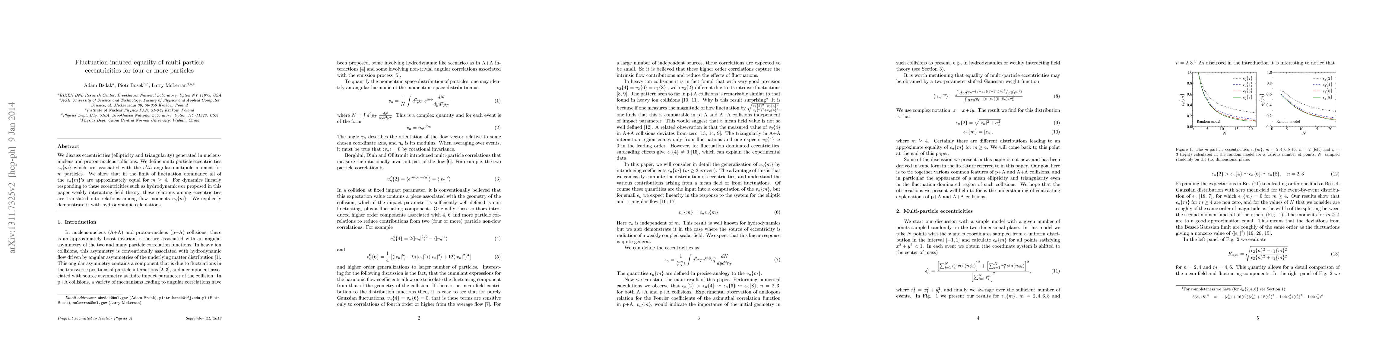 We discuss eccentricities (ellipticity and triangularity) generated in nucleus-nucleus and proton-nucleus collisions. We define multi-particle eccentricities $\epsilon_n\{m\}$ which are associated with the $n'th$ angular multipole moment for $m$ particles. We show that in the limit of fluctuation dominance all of the $\epsilon_n\{m\}$'s are approximately equal for $m \ge 4$. For dynamics linearly responding to these eccentricities such as hydrodynamics or proposed in this paper weakly interacting field theory, these relations among eccentricities are translated into relations among flow moments $v_n\{m\}$. We explicitly demonstrate it with hydrodynamic calculations.